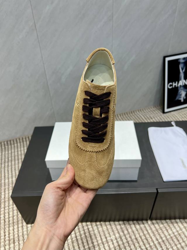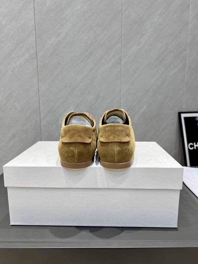 出厂: 独家顶级版本 The Row~小众潮牌25Vs秋季休闲新款系列 圆头拼色休闲鞋 原版一比一打造舒适度、包裹性都比较好。个性十足,很好驾驭各种风格衣服搭配 面料:原版定制牛猄 内里:原版定制羊皮 垫脚:原版定制羊皮 大底:原版开模成型底 跟高:1.0Cm 包装:原版全套包装, 码数:35-39 40.定制不退换 颜色:官网同步更新