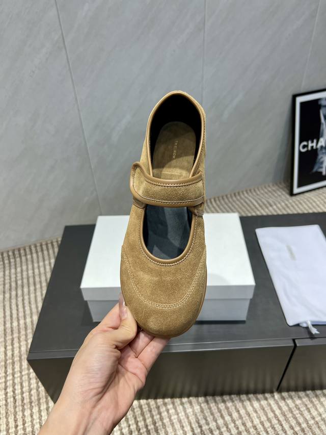 出厂: 独家顶级版本 The Row~小众潮牌25Vs秋季休闲新款系列 圆头横带休闲鞋 原版一比一打造舒适度、包裹性都比较好。个性十足,很好驾驭各种风格衣服搭配 面料:原版定制牛猄 内里:原版定制羊皮 垫脚:原版定制羊皮 大底:原版开模成型底 跟高:1.0Cm 包装:原版全套包装, 码数:35-39 40.定制不退换 颜色:官网同步更新