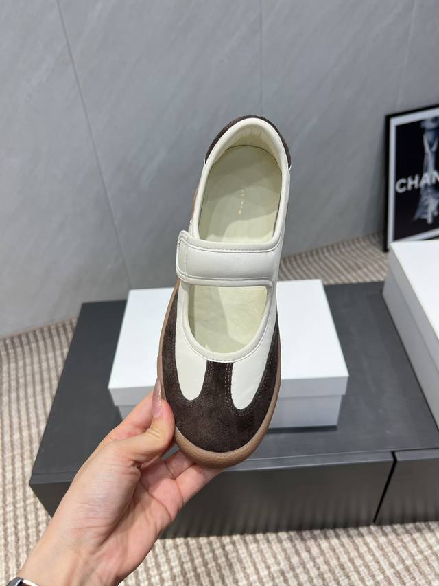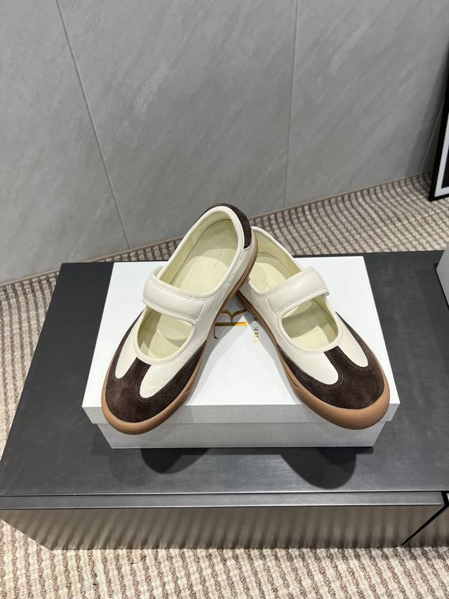 出厂: 独家顶级版本 The Row~小众潮牌25Vs秋季休闲新款系列 圆头横带休闲鞋 原版一比一打造舒适度、包裹性都比较好。个性十足,很好驾驭各种风格衣服搭配 面料:原版定制羊皮牛猄拼色 内里:原版定制羊皮 垫脚:原版定制羊皮 大底:原版开模成型底 跟高:3Cm 包装:原版全套包装, 码数:35-39 40.定制不退换 颜色:官网同步更新
