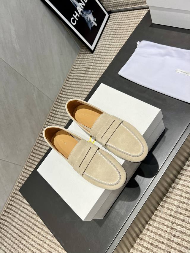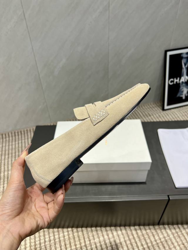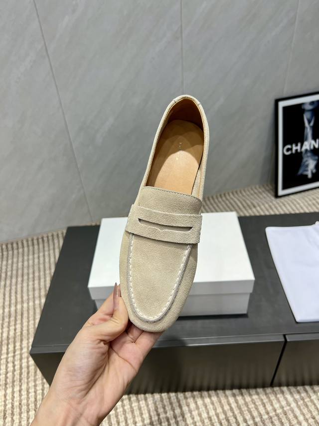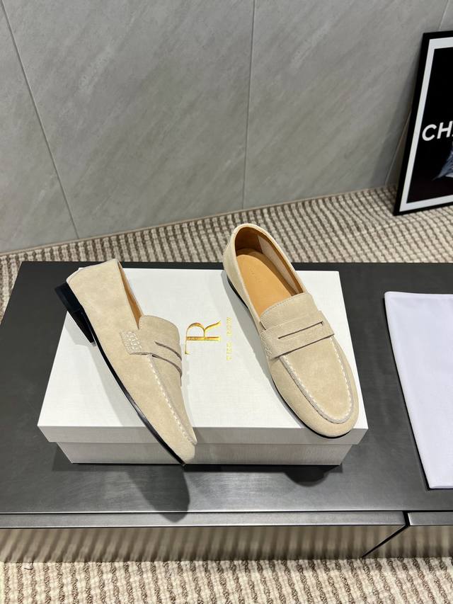 出厂: 独家顶级版本 The Row小众潮牌25Vs秋季新款系列 圆头平底单鞋 原版一比一打造舒适度、包裹性都比较好。个性十足,很好驾驭各种风格衣服搭配 面料:原版定制牛猄 内里:原版定制羊皮 垫脚:原版定制羊皮 大底:原版定制真皮大底 跟高:平底 包装:原版全套包装, 码数:35-39 40.定制不退换 颜色:官网同步更新