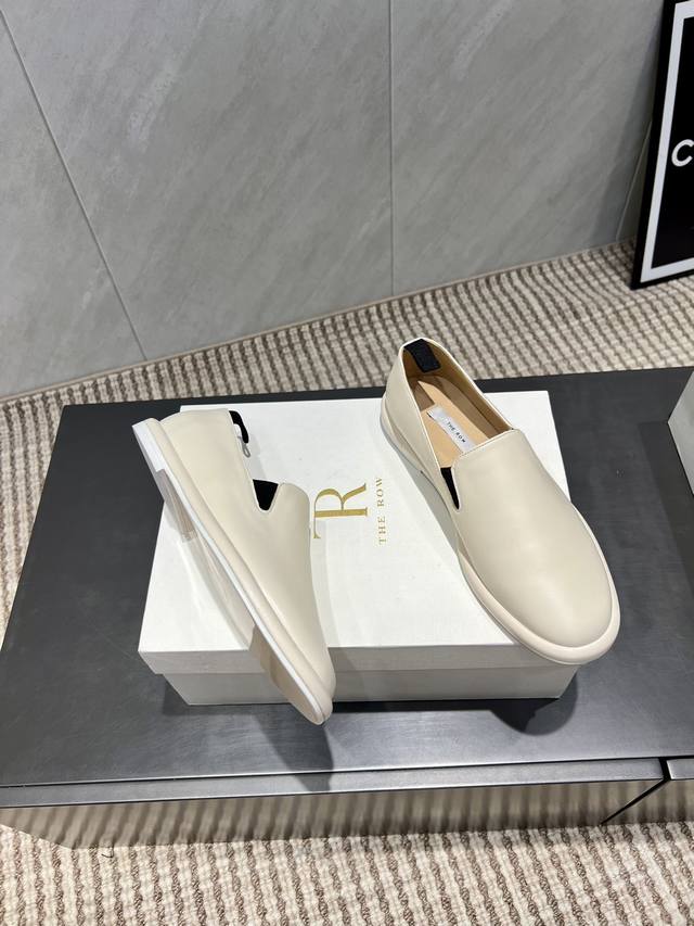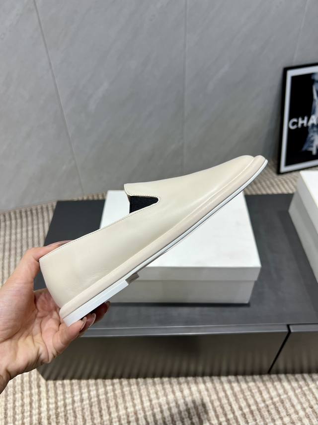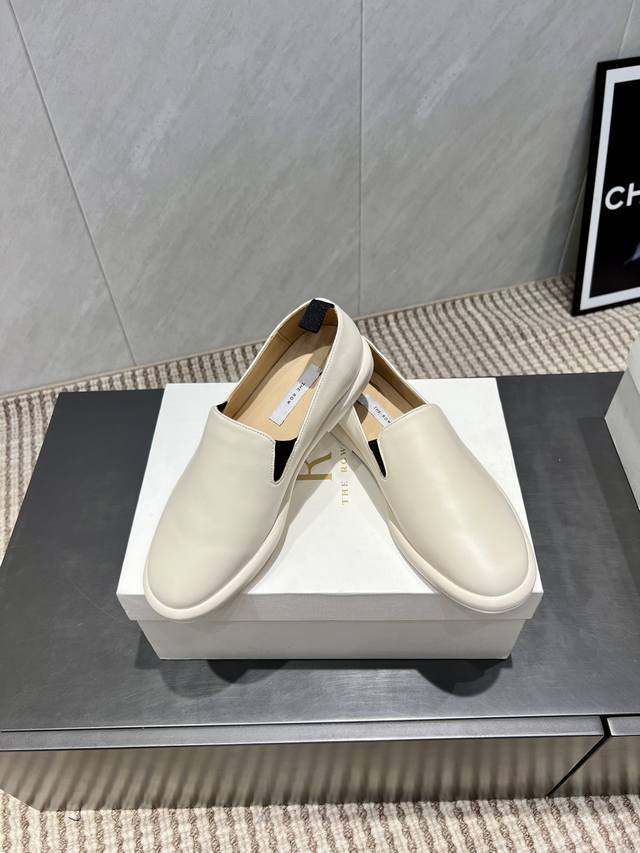出厂: 独家顶级版本 The Row小众潮牌25Vs秋季新款系列 圆头平底单鞋 原版一比一打造舒适度、包裹性都比较好。个性十足,很好驾驭各种风格衣服搭配 面料:原版定制牛皮 内里:原版定制羊皮 垫脚:原版定制羊皮 大底:原版定制真皮大底 跟高:平底 包装:原版全套包装, 码数:35-39 40.41码定制不退换 颜色:官网同步更新