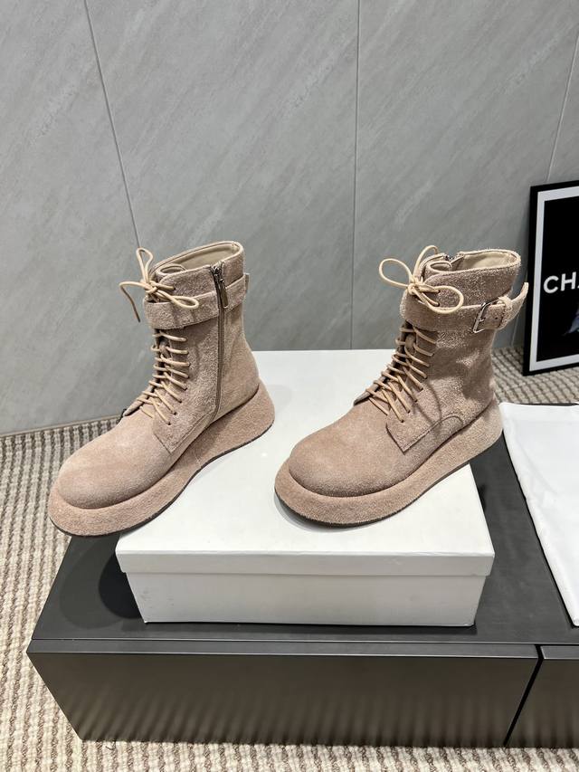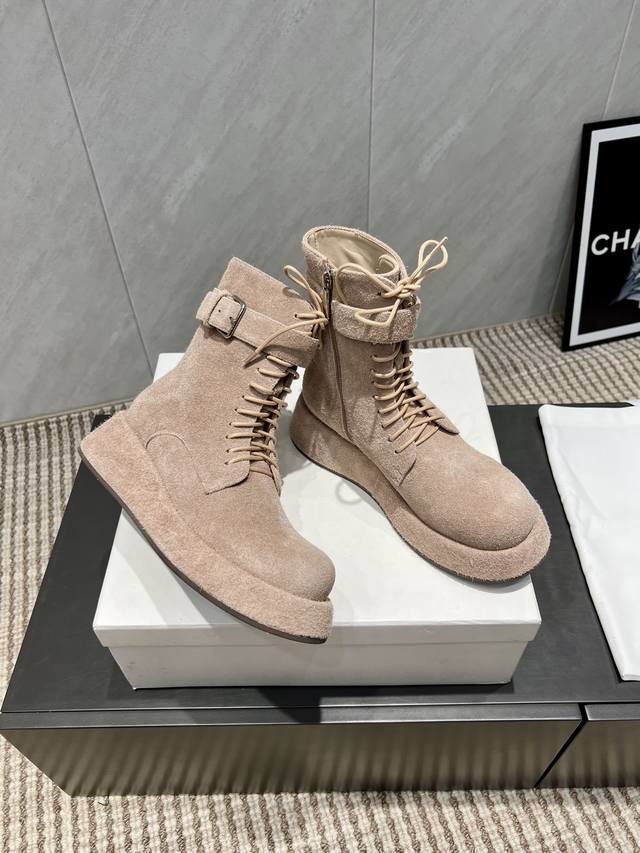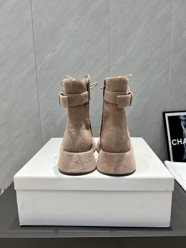 出厂: 独家顶级版本 The Row2025Vs早秋最新休闲爆款靴子系列 圆头厚底绑带短靴 原版一比一开模复刻,超级百搭好看,刘雯同款,点赞无数,原版版型,脚感