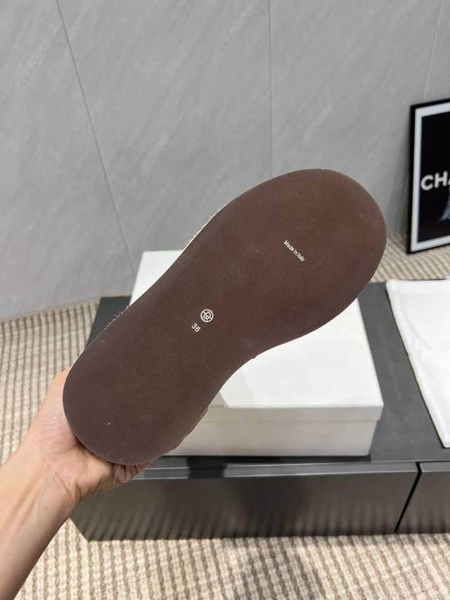 厂价 Toteme25Wf春夏新品方跟一字带头猫拖鞋这双拖鞋把清冷感与松弛感狠狠拿捏住了!方头设计复古又时髦...