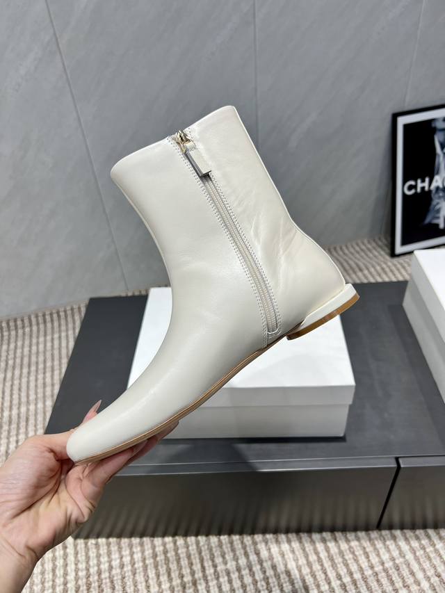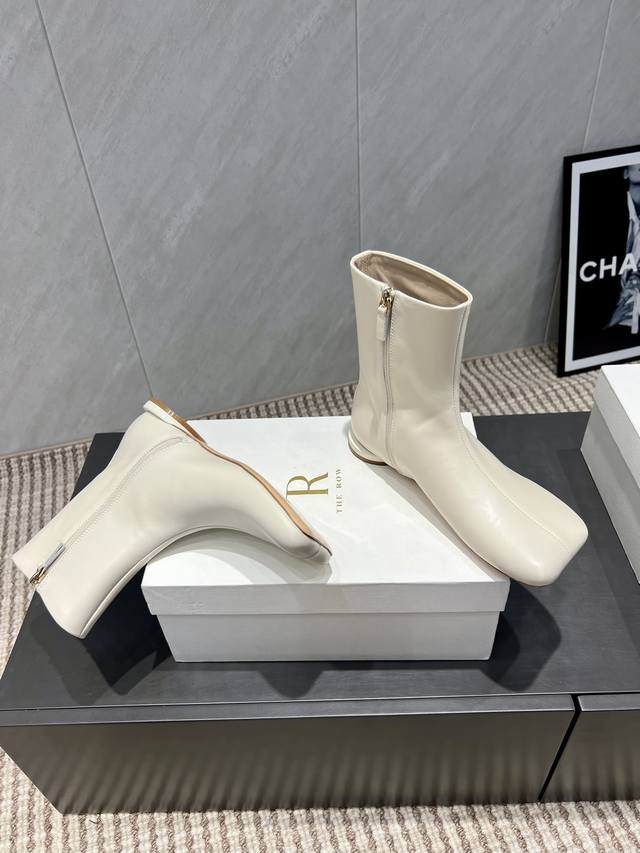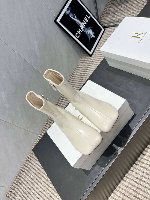 出厂: 独家顶级版本 The Row2025Vs早秋最新爆款靴子系列 圆方头拉链短靴 原版一比一开模复刻,超级百搭好看,刘雯同款,点赞无数,原版版型,脚感非常舒