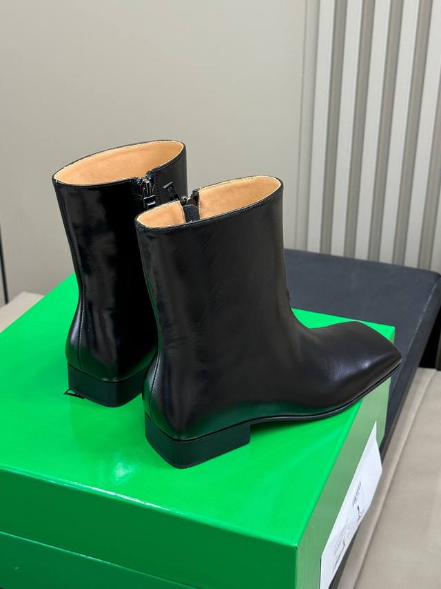 出厂 男+10 Bv Fw25 情侣款 短靴 小方头设计,率性帅气,时髦好看 开边珠牛皮,质感特别好! 内里小牛皮,鞋底意大利进口牛皮革 情侣Size 35-4