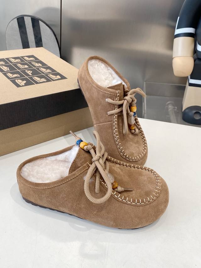 / 出厂 秋冬的温柔陷阱,是踩进这双毛毛拖的瞬间 软Fufu的羊毛包裹,复古扣饰拿捏慵懒感 宅家Or出街,就是这款袋鼠拖,都是被温暖偏爱的日常~ 颜色 栗色 巧色