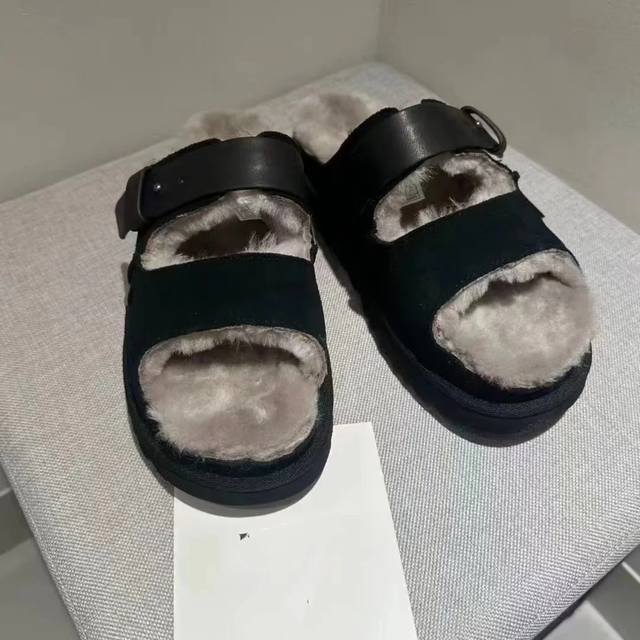 出厂 顶级版本 2025,Ugg波特舒芙蕾春秋新款拖鞋,简约又不失格调,质感翻毛皮鞋面,温柔羊毛里衬,脚感就像踩在云朵 上,舒服到不想脱下来 跟高3Cm刚好修饰