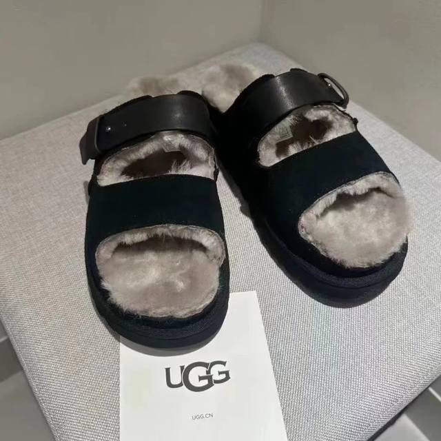 / 出厂 顶级版本 2025,Ugg波特舒芙蕾春秋新款拖鞋,简约又不失格调,质感翻毛皮鞋面,温柔羊毛里衬,脚感就像踩在云朵 上,舒服到不想脱下来 跟高3Cm刚好修饰