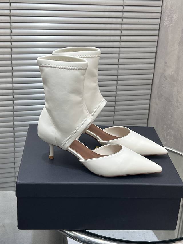 该款尖头踝靴,采用几何镂空露肤设计,搭配55毫米鞋跟,更加拉长腿部线条比例; 弹力绒面皮山羊皮制成,轻松打造摩登型格。