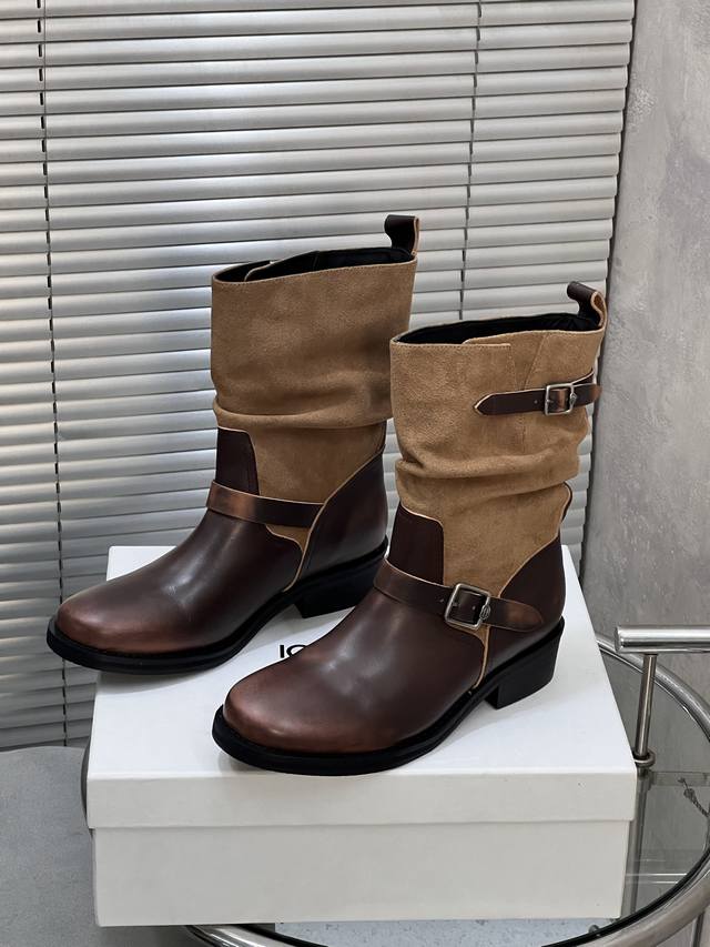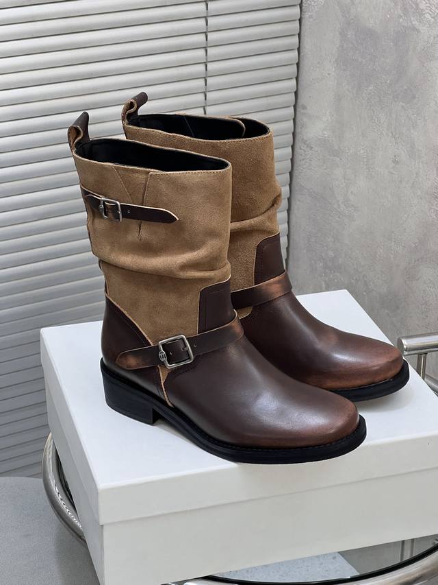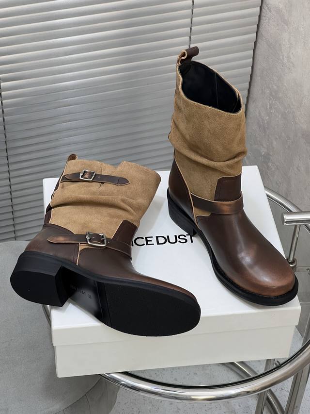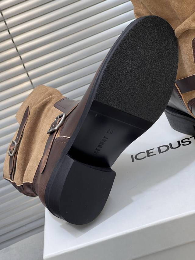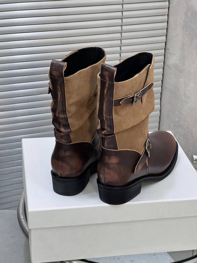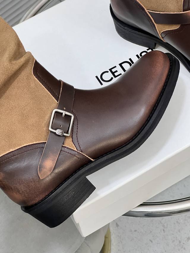 出厂 Icedust 新款褶皱擦色复古中筒骑士靴站靴! 鞋面:进口头层牛皮+牛京皮 内里:进口羊皮 大底:原版大底 跟高:5Cm 码数:35 41 40 41定