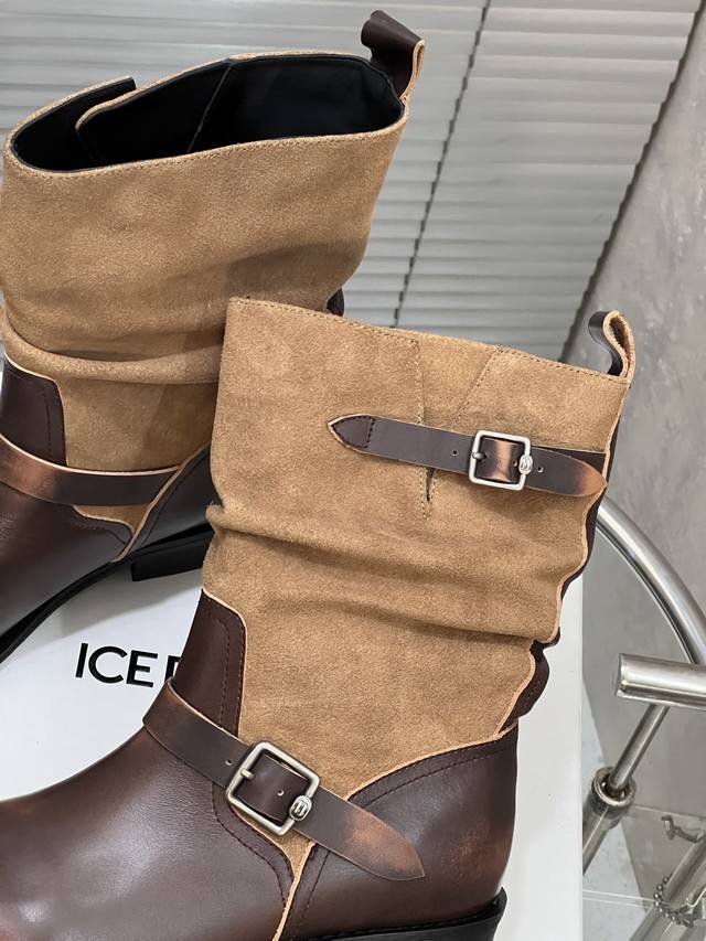 / 出厂 Icedust 新款褶皱擦色复古中筒骑士靴站靴! 鞋面:进口头层牛皮+牛京皮 内里:进口羊皮 大底:原版大底 跟高:5Cm 码数:35 41 40 41定