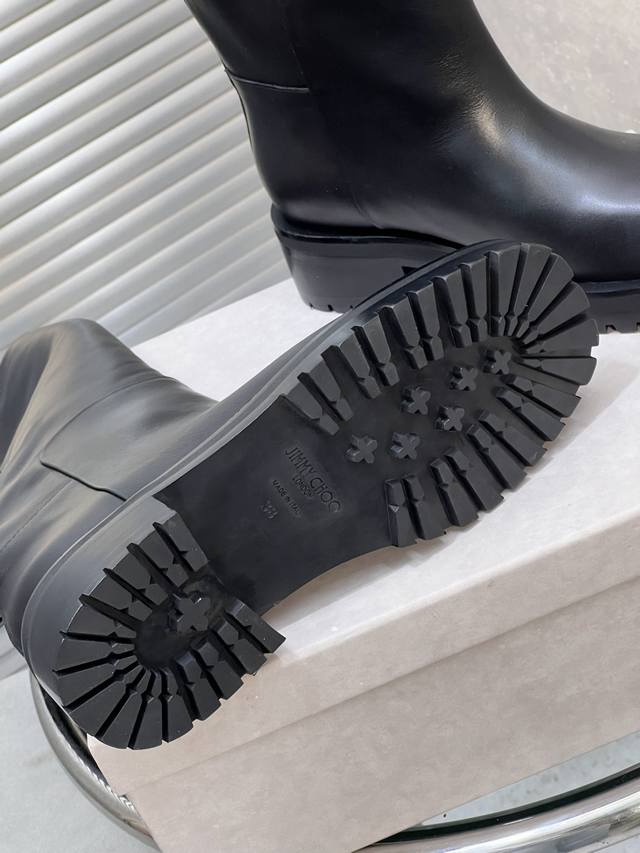 / 出厂 Jimmy Choo经典靴子系列 上脚超有气场 任何穿搭都能Hold住,简约大气 百搭精品。 鞋面:进口小牛皮 内里:进口小牛皮 大底:意大利真皮大底 跟