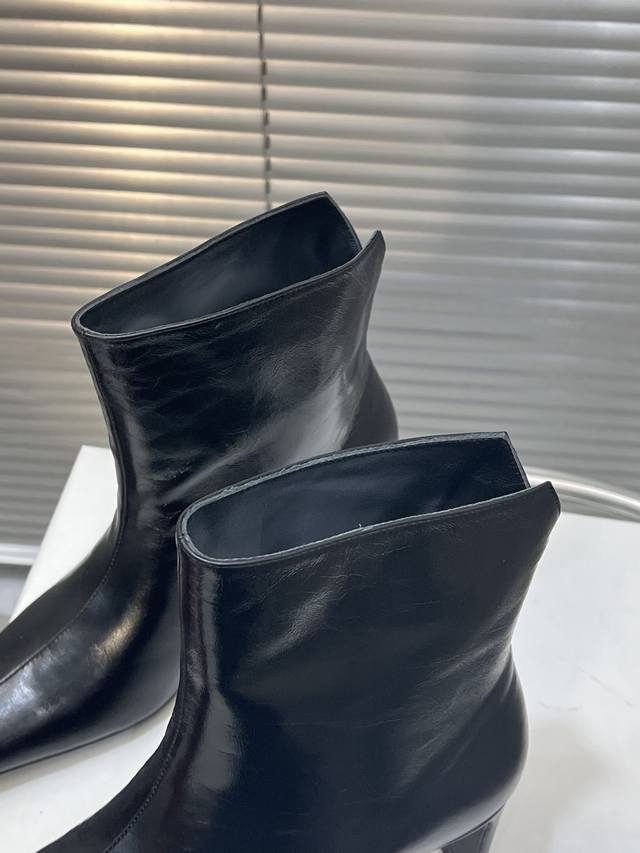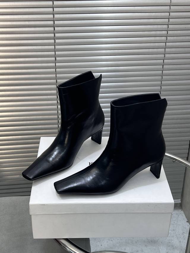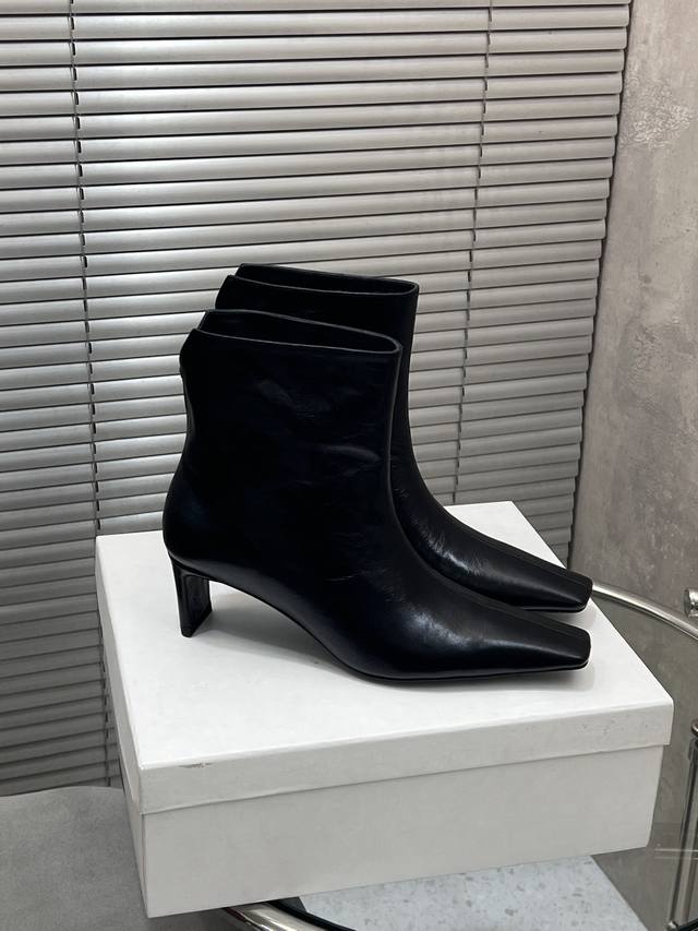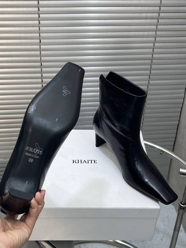 / 出厂 Khaite 秋冬新款25Ss 小众潮牌小方头短靴绝美裸靴 鞋面:牛皮 羊猄皮 内里垫脚:羊皮 鞋底:意大利进口真皮大底 码数:35-41 40 41定做