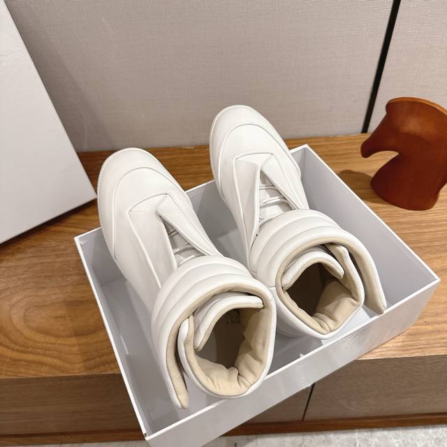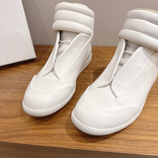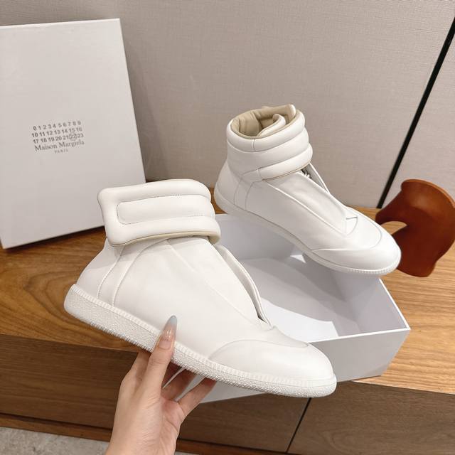 出厂 Maison Margiela高帮运动鞋Maisonmargiela这款高帮运动鞋采用头层牛皮质感细腻又耐用经典圆头+流线型鞋面未来感满满辨识度超高+内里