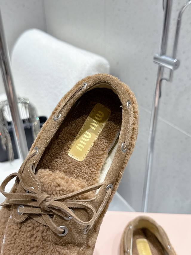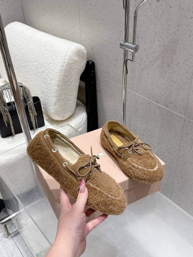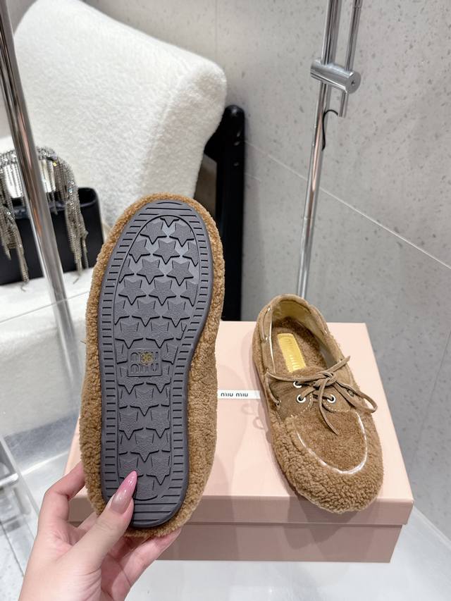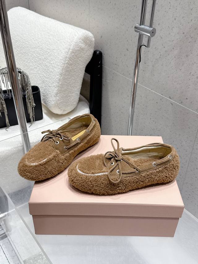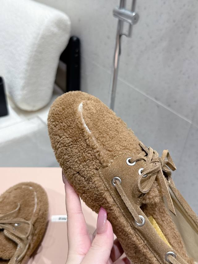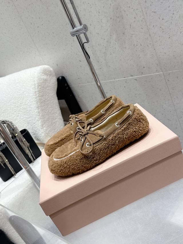出厂 Miumiu缪缪 Miu家 秋冬新品 专柜最新爆款蝴蝶结毛毛鞋 一脚蹬乐福鞋 单鞋 鞋面:进口羊毛 牛筋皮 内里:羊毛 大底:原版开模防滑Tpu大底 码数
