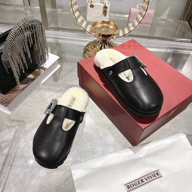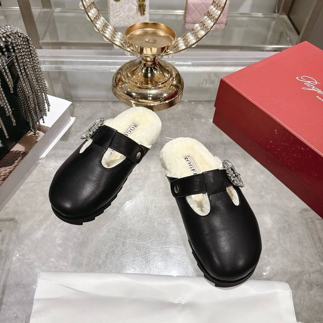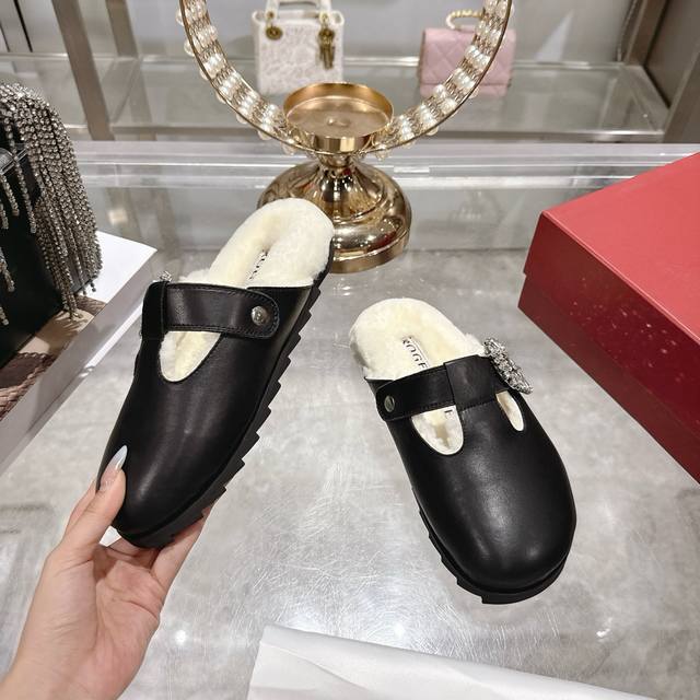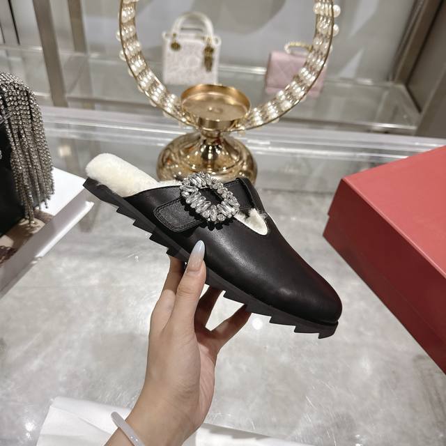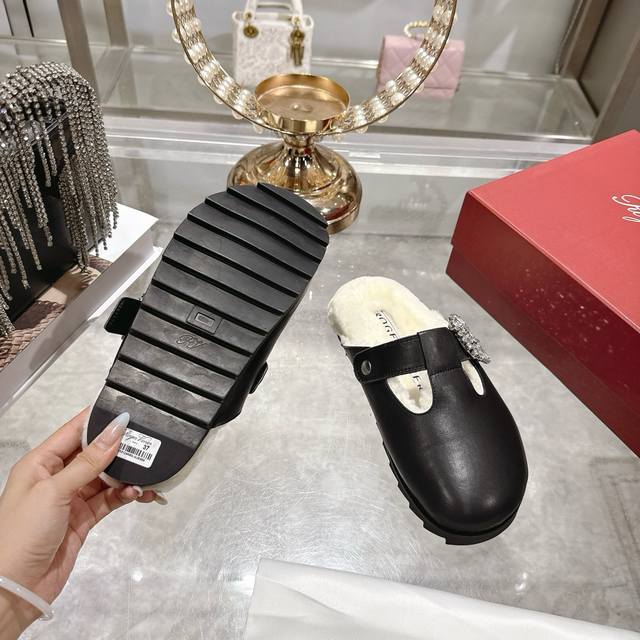 出厂 Rv 2025Ss专柜新款Viv Run系列钻扣羊毛里穆勒拖鞋 认准代购级品质货源!气质高级的一款钻扣毛拖,不仅轻便舒适,松糕底增长大长腿上脚舒适满分,搭