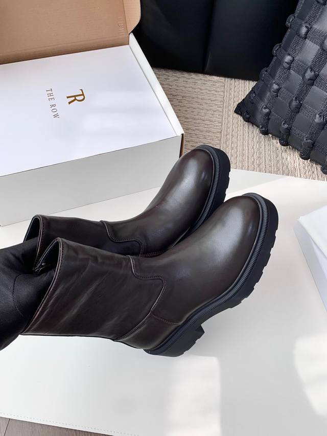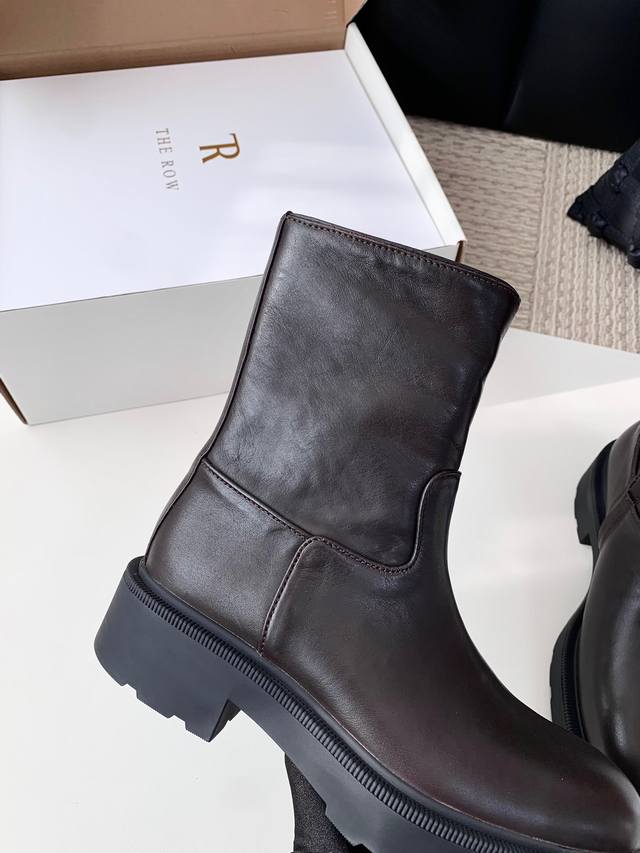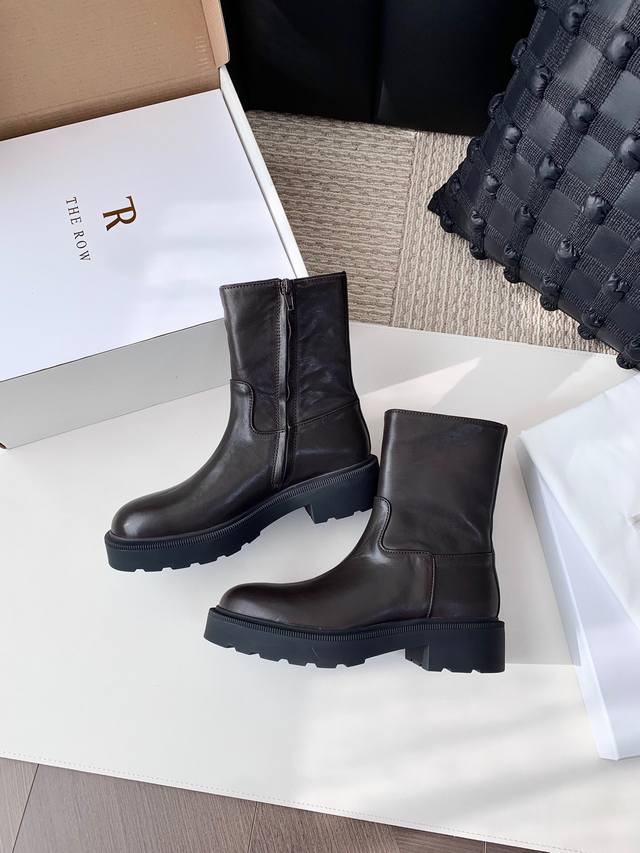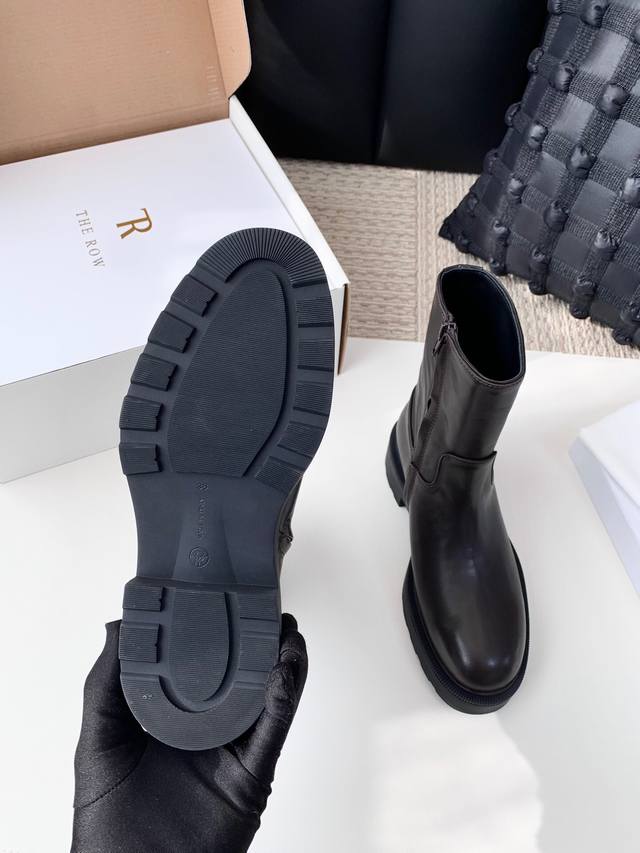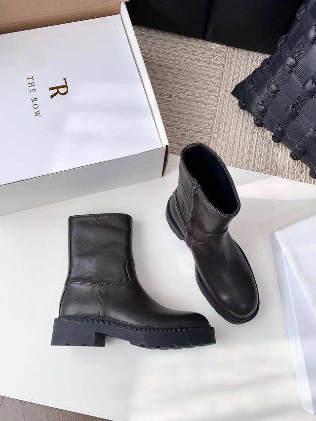 出厂 The Row最新简约中古短靴 代购品质 非常简约百搭的一款中古风帅气短靴,自留必备!原版材料1:1复核,鞋面头层小牛皮~内里垫脚全牛皮,精细车线 好货看