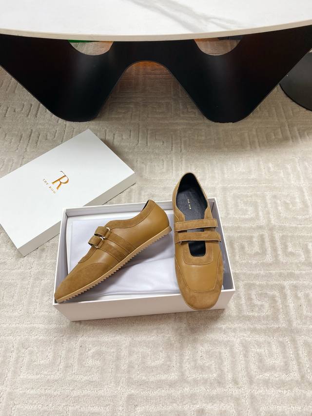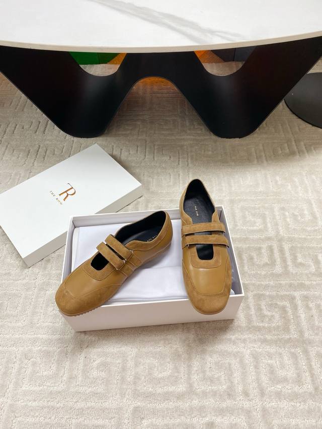 出厂 The Row26春夏新款魔术贴玛丽珍休闲鞋时尚俏皮百搭款,简简单单版型,平底加简约的配色高级耐看,自带文艺复古气质的玛丽珍,哪怕是基础款穿搭,在Ta的点缀下整体造型瞬间提升档次。适配所有单品,不管是牛仔裤、短裤、短裙、长裙,都能搭配出时髦感。它把运动鞋的舒适和芭蕾舞鞋的优雅完美结合!看起来简单大方,上脚却特别显气质不管是逛街还是上班,这双鞋都能让你舒服又时髦,清新又亮眼! DDD 鞋面采用进口胎牛绒感混着淡淡灰白调混种羊皮皮材质皮面拼接 DDD 两种颜色拼接超有层次感 DDD 内里垫脚羊皮 DDD