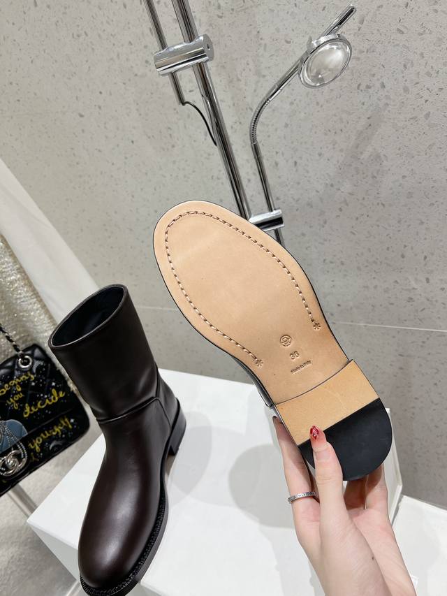 出厂 DDD Therow秋冬新款短靴 高级感这点从来就没输过一双简约干练、低调时髦的靴子没有鲜艳的色彩和繁杂的设计,仅凭2Cm的小跟和利落时髦的方头设计就能气场全开,高级感十足原版订制牛皮面料 羊皮内里 DDD 意大利进口真皮大底 DDD 码数35-39 40订做不退换 DDD
