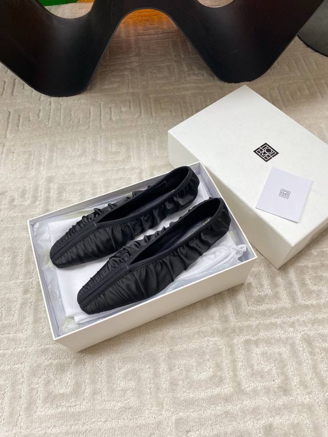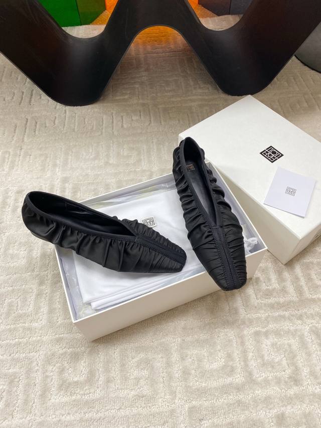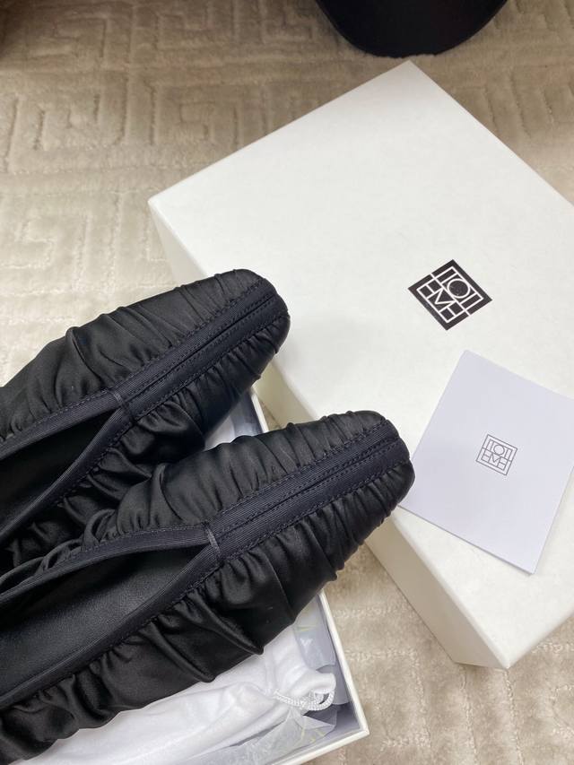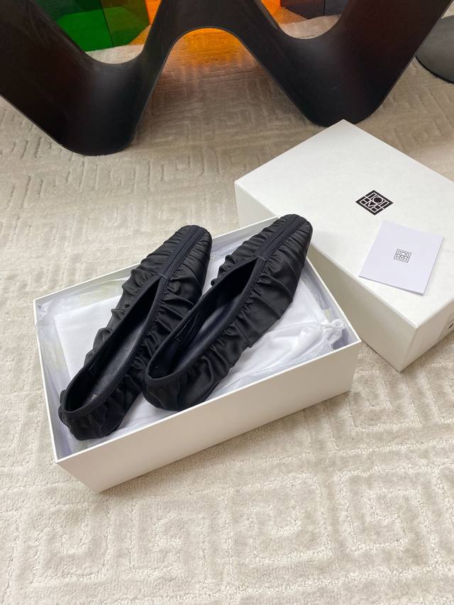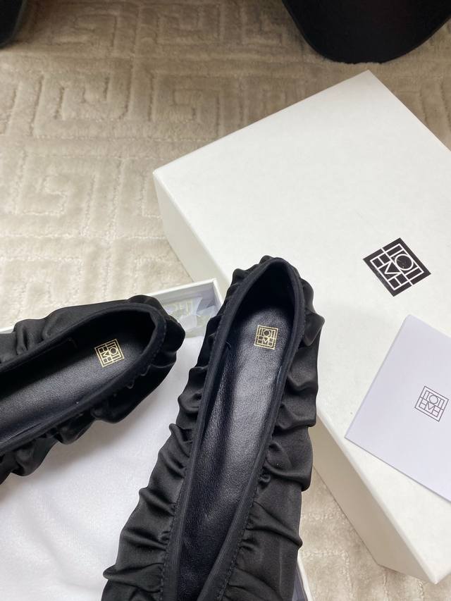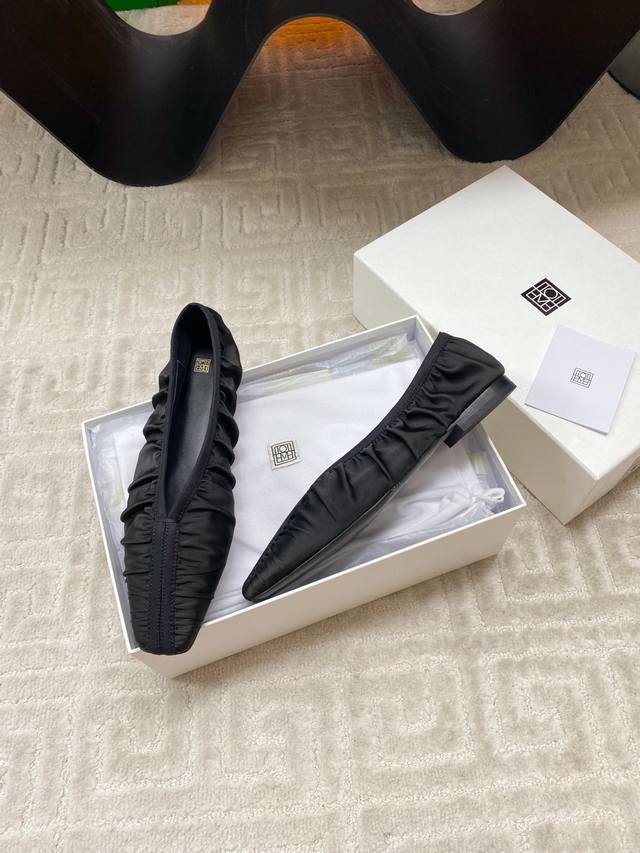 出厂 Toteme 25S方头褶皱芭蕾鞋