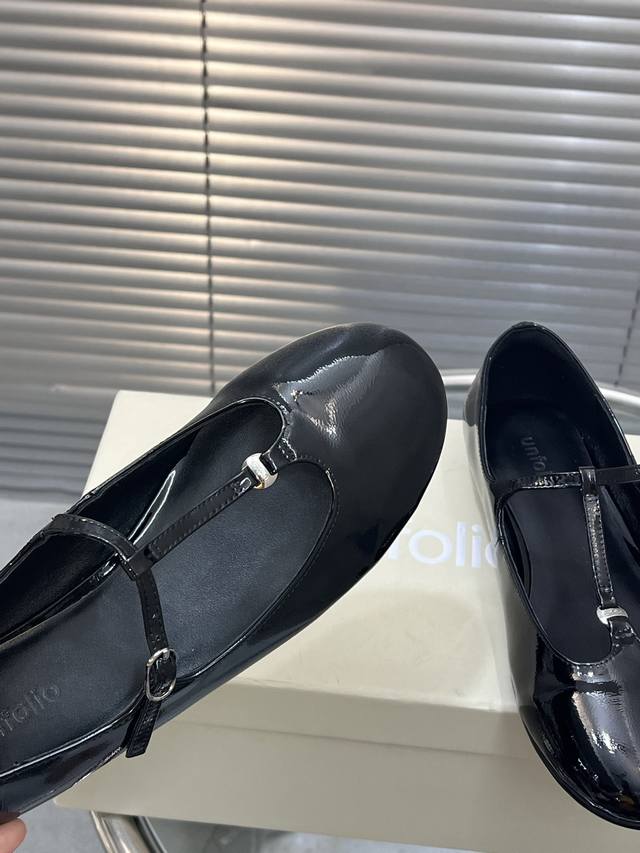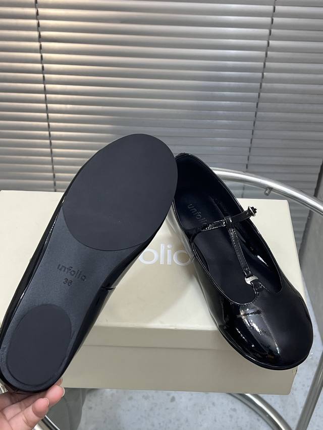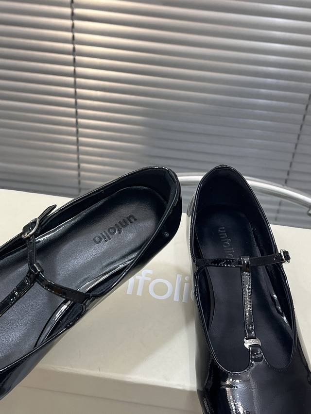 出厂 Unfolio 小众品牌 早秋新款搭扣T字带玛丽珍鞋圆头平底单鞋 鞋面:牛漆皮 内里垫脚:羊皮 鞋底:开模防滑橡胶大底 码数:35-39 34 40 41
