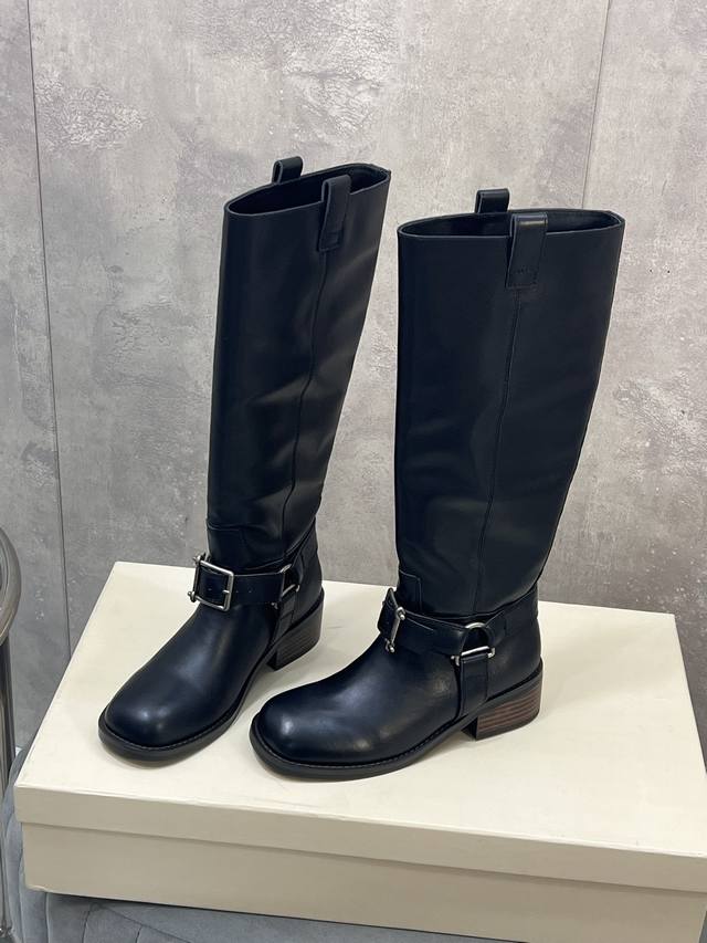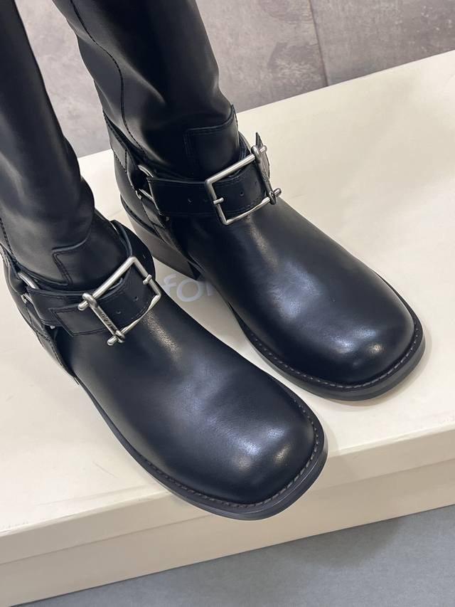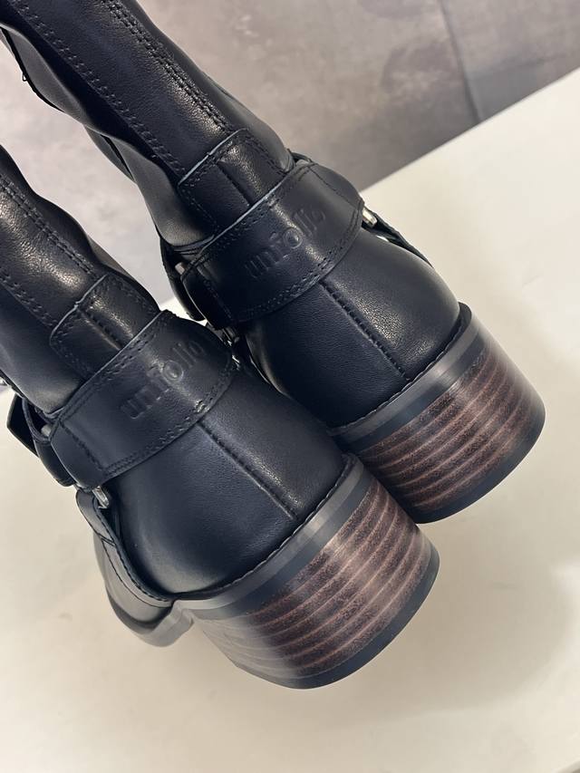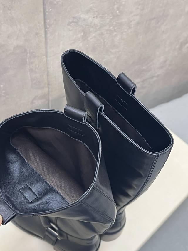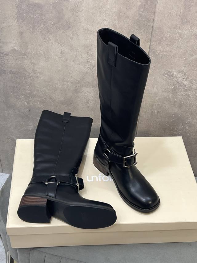 出厂 Unfolio 秋冬新款皮带搭扣圆头直筒靴 鞋面:牛皮 内里:原版布里 大底:原版大底 Size:35-41 40.41定做不退换