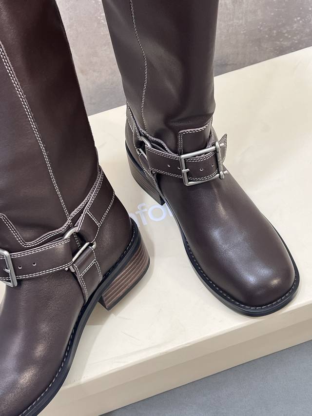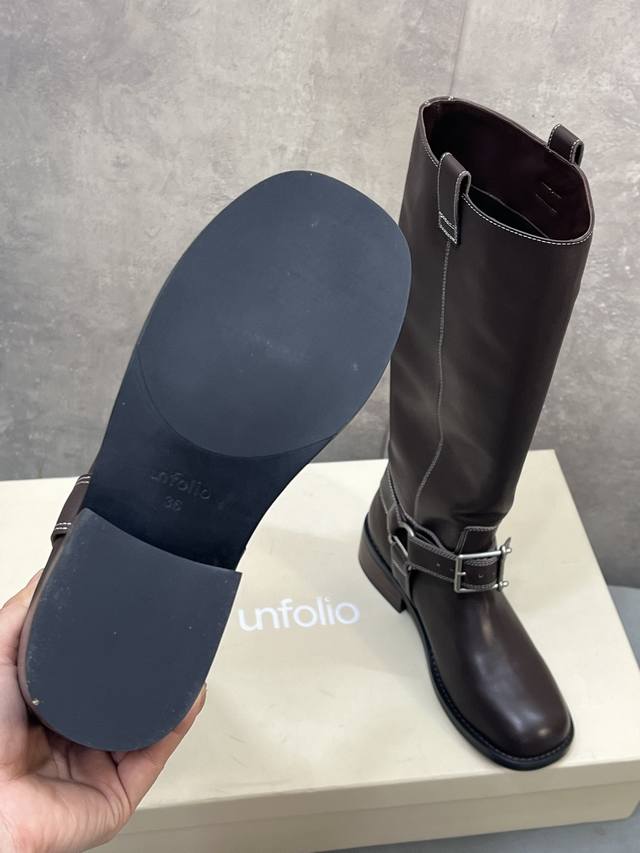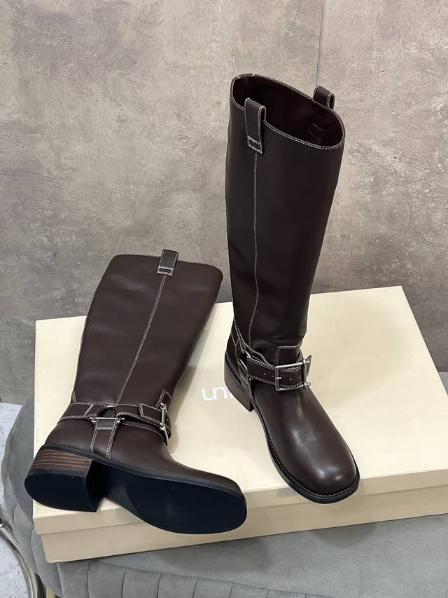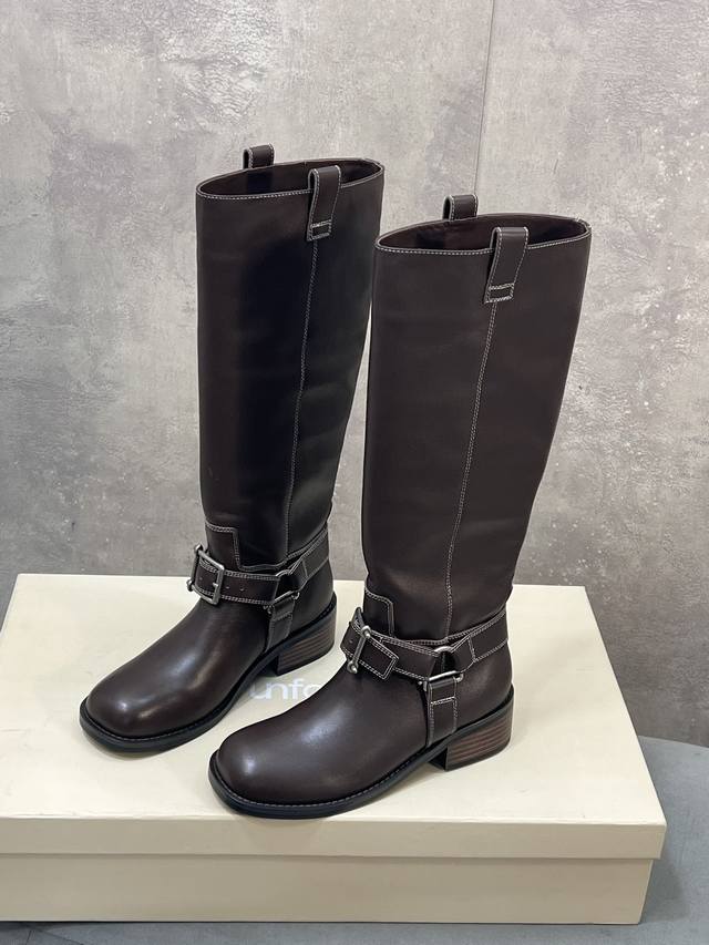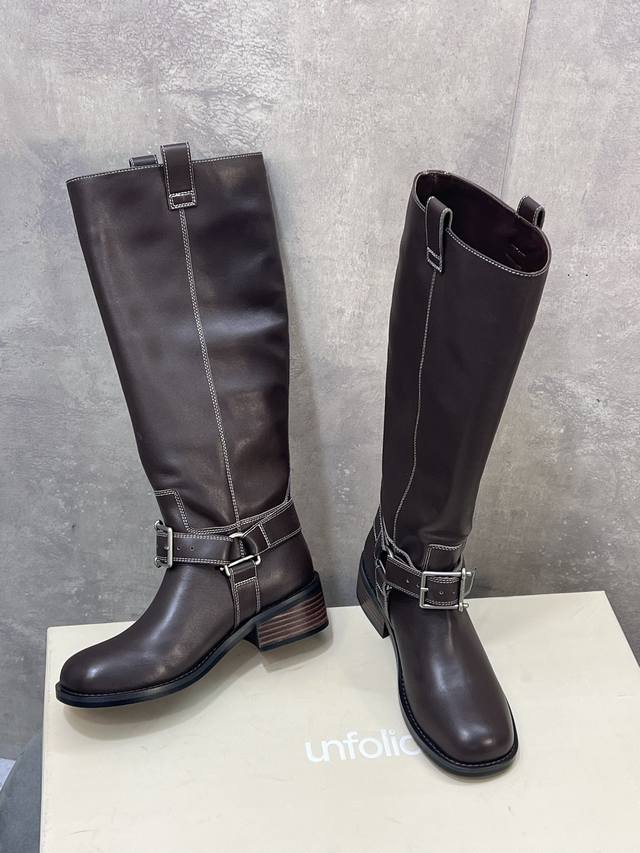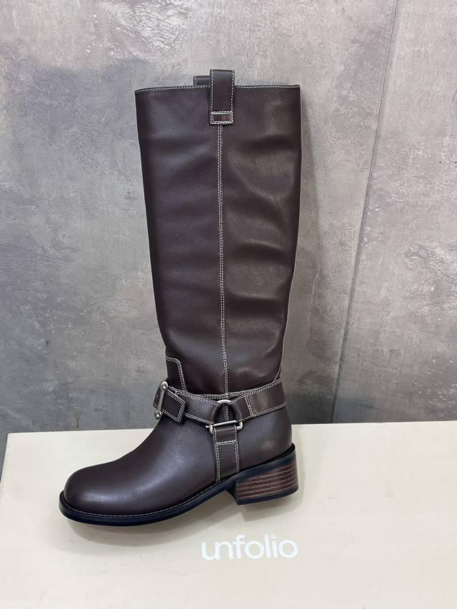出厂 Unfolio 秋冬新款皮带搭扣圆头直筒靴 鞋面:牛皮 内里:羊皮 大底:原版大底 Size:35-41 40.41定做不退换