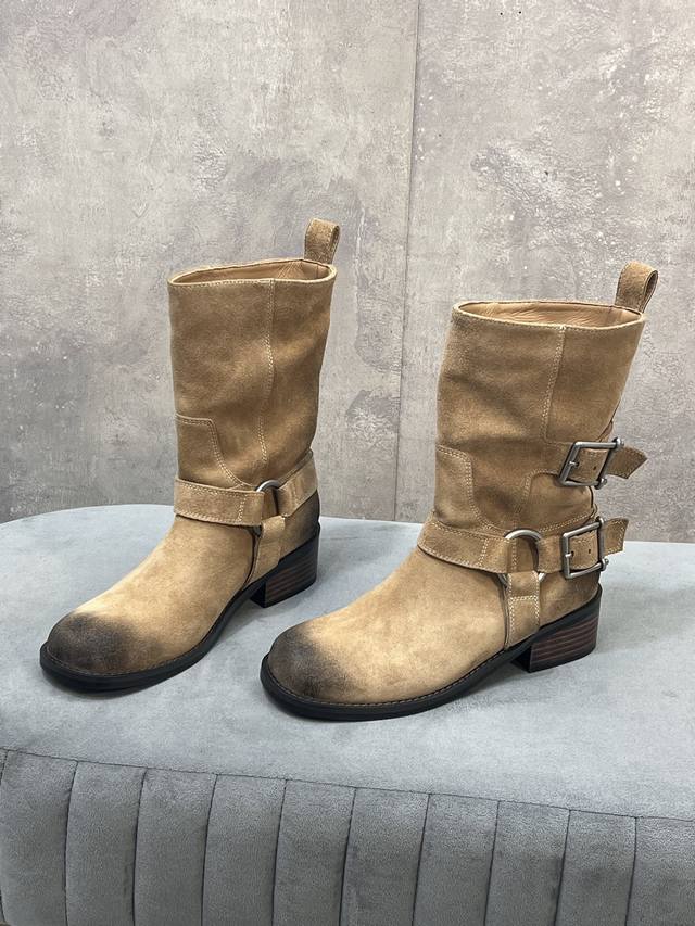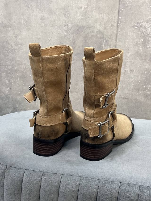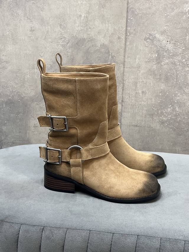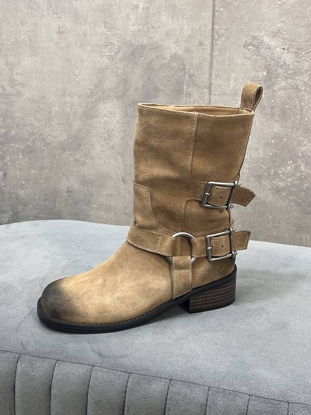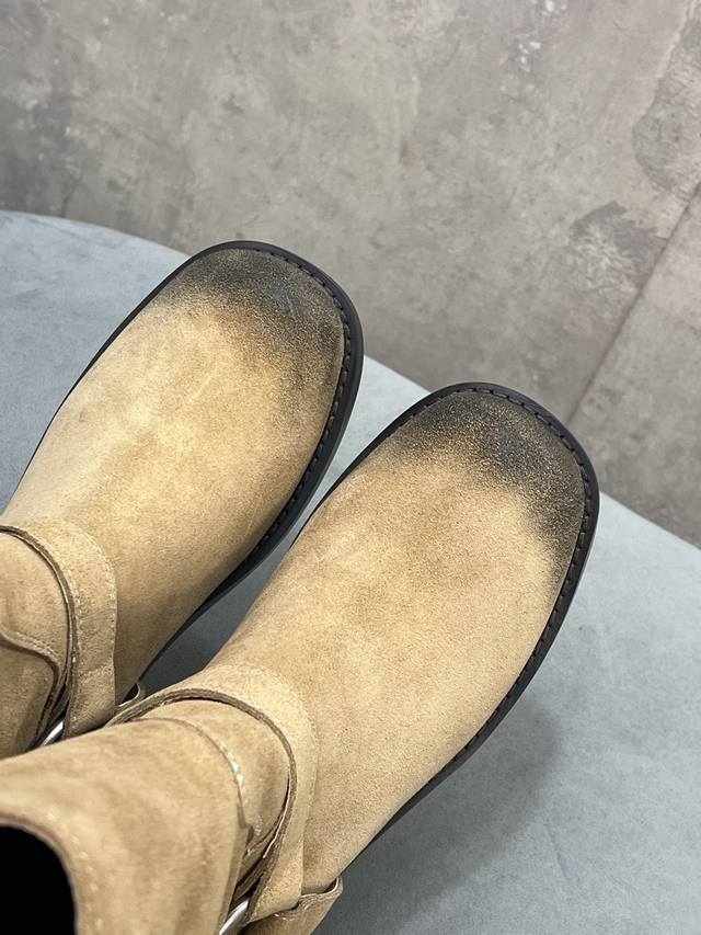/ 出厂 Unfolio 秋冬新款皮带搭扣圆头短靴 鞋面:牛猄 内里:原版布料里 羊皮垫脚 大底:原版大底 Size:35-41 40.41定做不退换