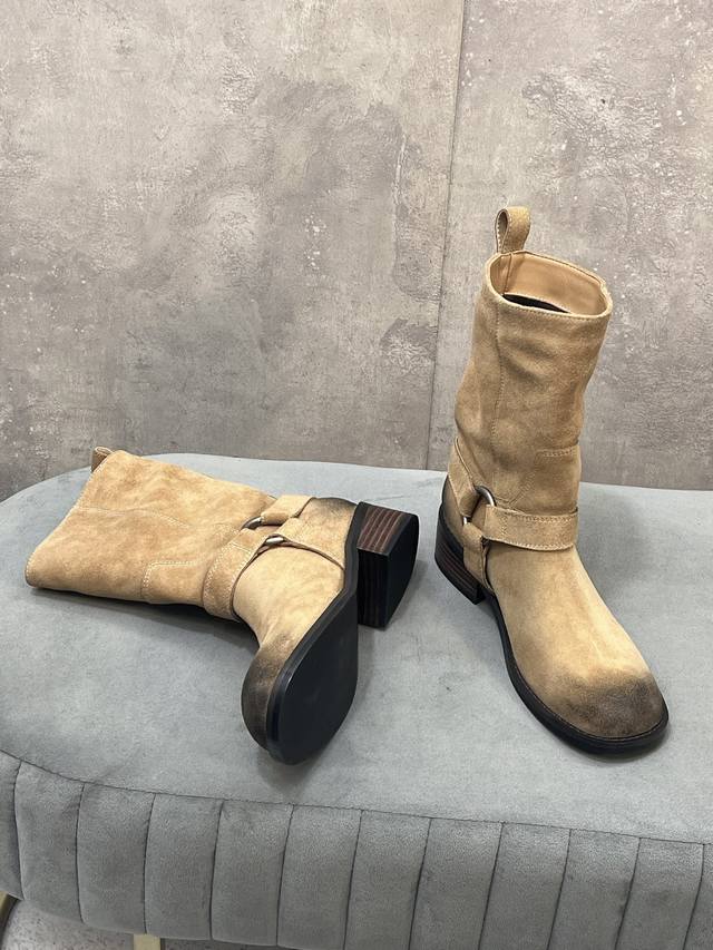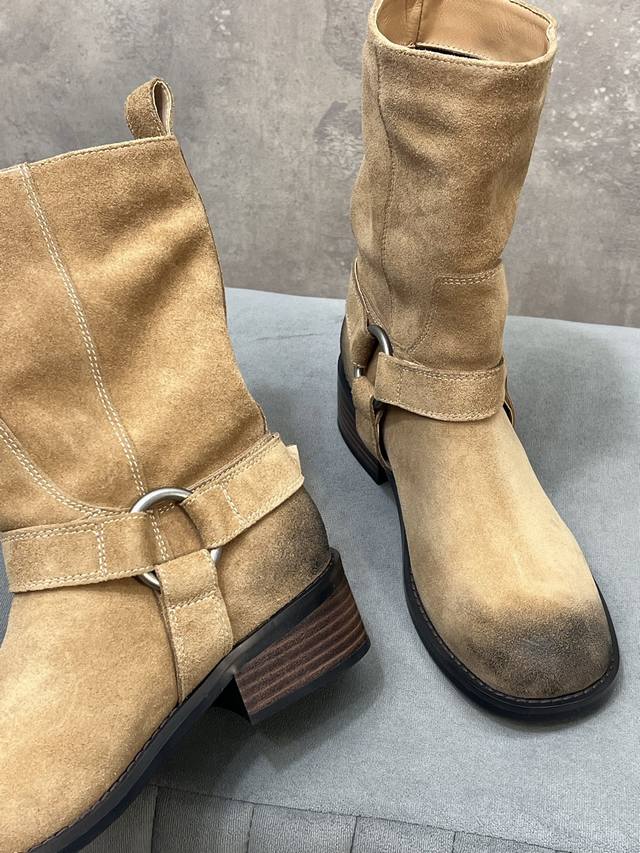 出厂 Unfolio 秋冬新款皮带搭扣圆头短靴 鞋面:牛猄 内里:原版布料里 羊皮垫脚 大底:原版大底 Size:35-41 40.41定做不退换