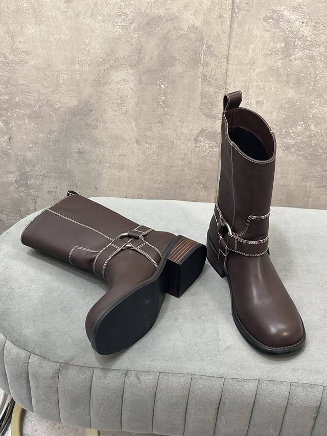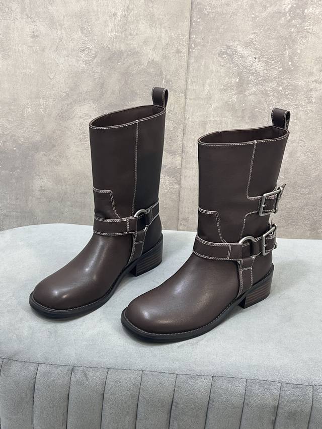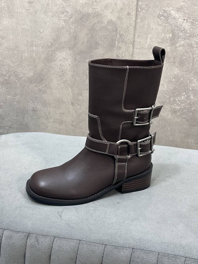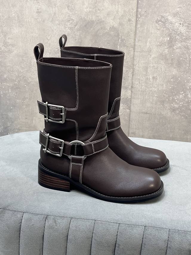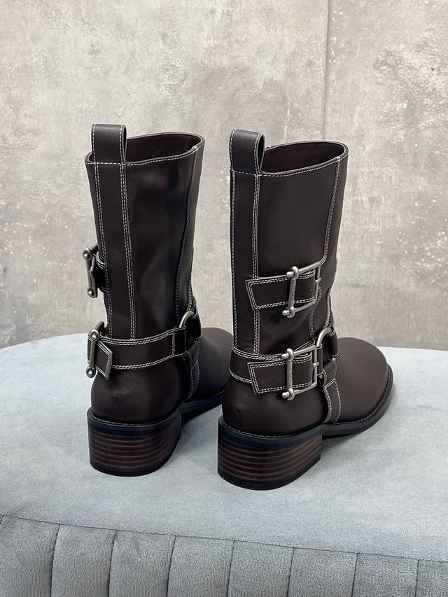 / 出厂 Unfolio 秋冬新款皮带搭扣圆头短靴 鞋面:牛皮 内里:原版布料里 羊皮垫脚 大底:原版大底 Size:35-41 40.41定做不退换