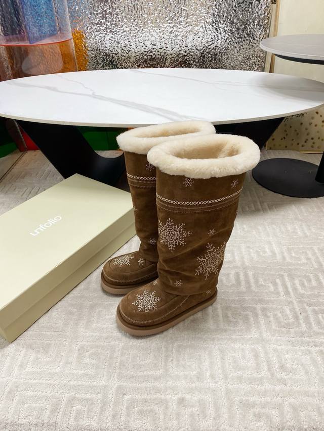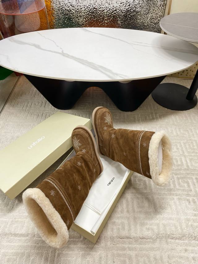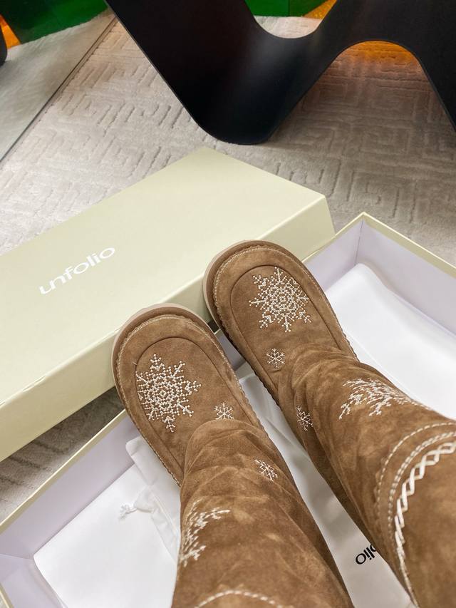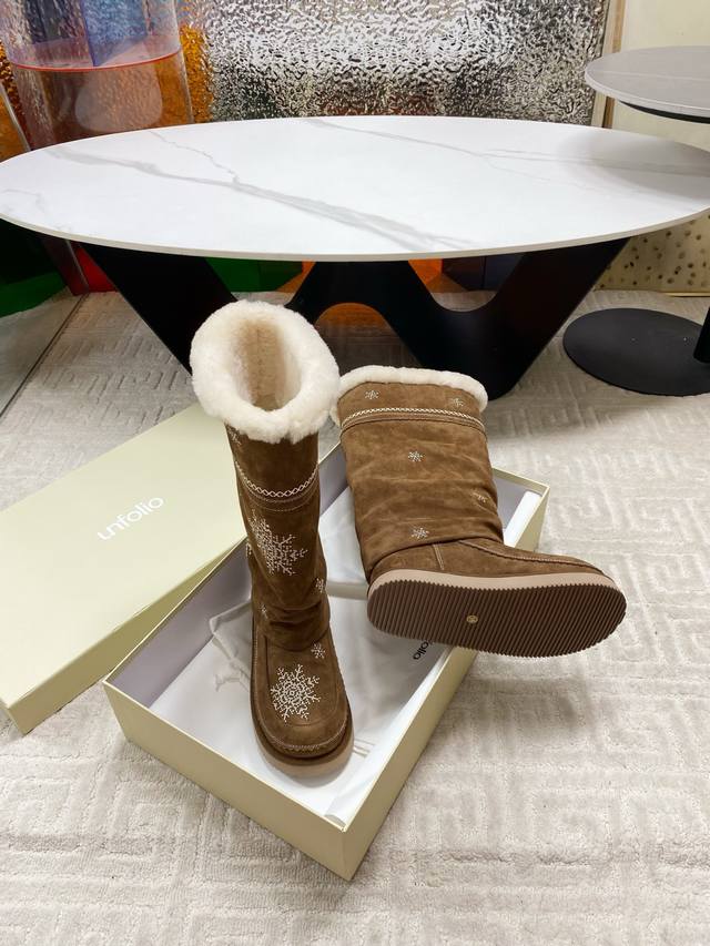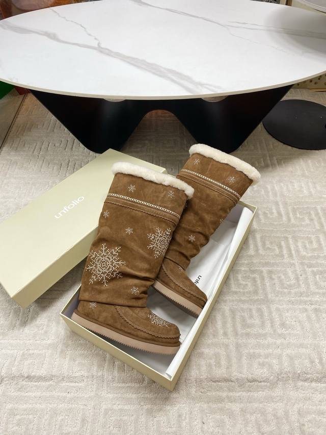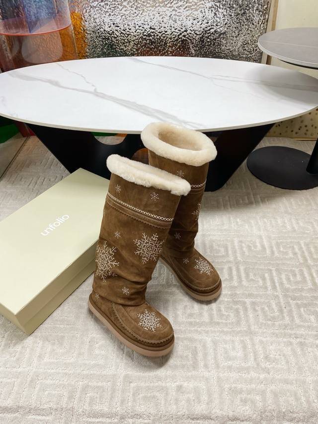 / 出厂 Unfolio 2025秋冬复古雪花雪地靴,一眼心动的雪地靴,冬日来信雪花飘落,雪花为信,流苏为韵,是Unfolio写给冬日的温柔絮语对版高丝光牛反绒面料
