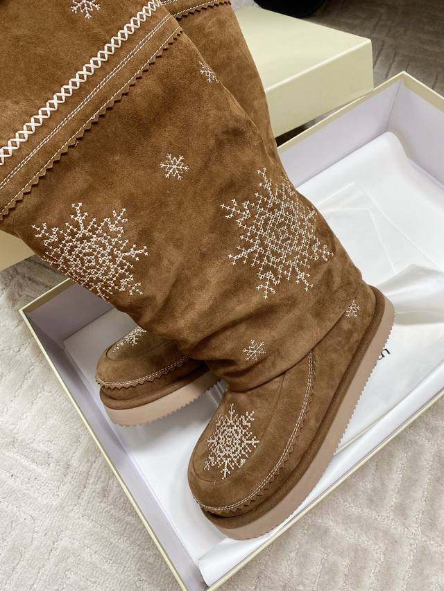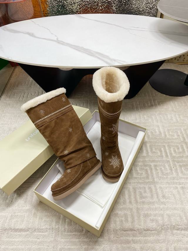 出厂 Unfolio 2025秋冬复古雪花雪地靴,一眼心动的雪地靴,冬日来信雪花飘落,雪花为信,流苏为韵,是Unfolio写给冬日的温柔絮语对版高丝光牛反绒面料