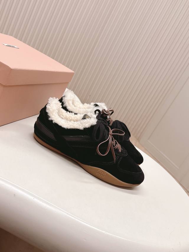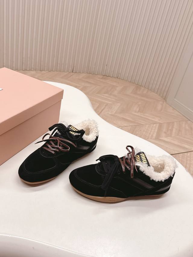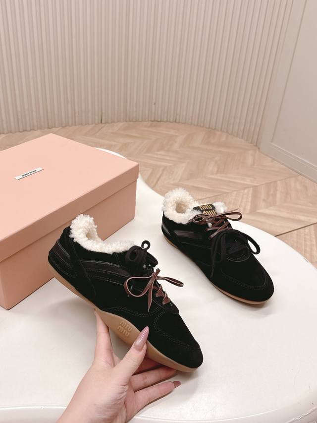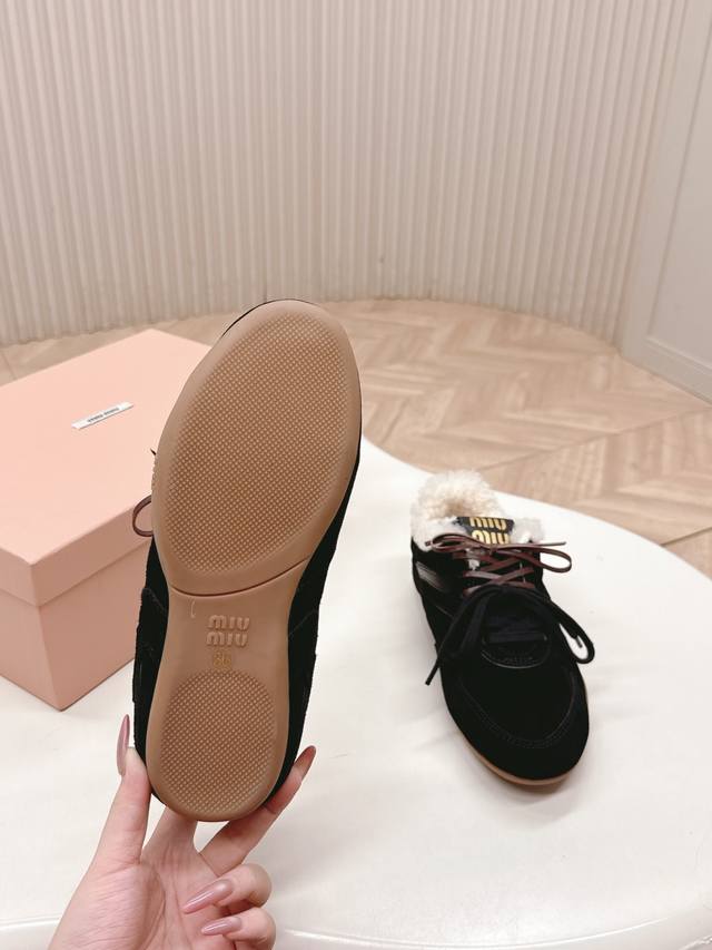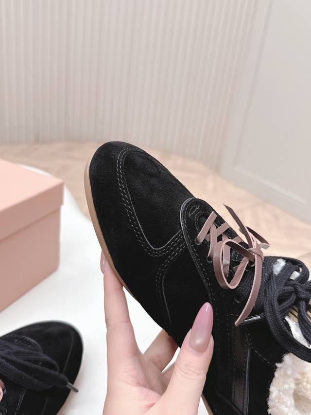 出羊毛里 Miumiu缪缪最新款美式复古风老休闲德训鞋 ~ 颜值担当火爆款运动鞋 不得不入的一款~做旧时尚,简约高级 随意搭配上脚非常舒适,年度必入款 最新走秀款运动老爹鞋国内外博主刷爆的一款,小红书种草系列,复古又时髦上脚美炸了简约的运动板鞋设计,极具辨识度的鞋舌,打造佛系甜美的休闲风~~上脚气场十足随意搭配 主流双鞋带设计 主打一个时尚选用进口牛皮磨砂皮网纱材质,内里混种羊皮里,原版私模大底 Size.:35-40 DDD