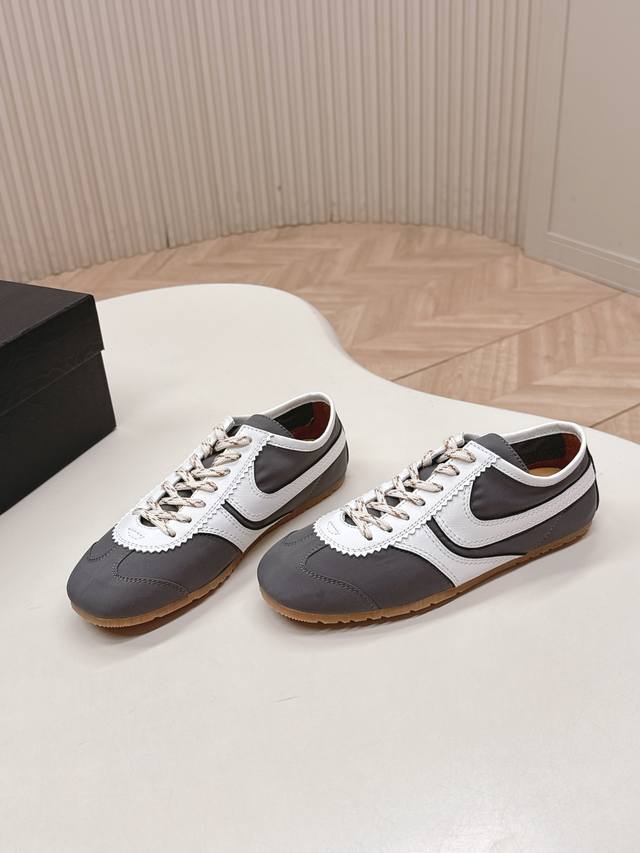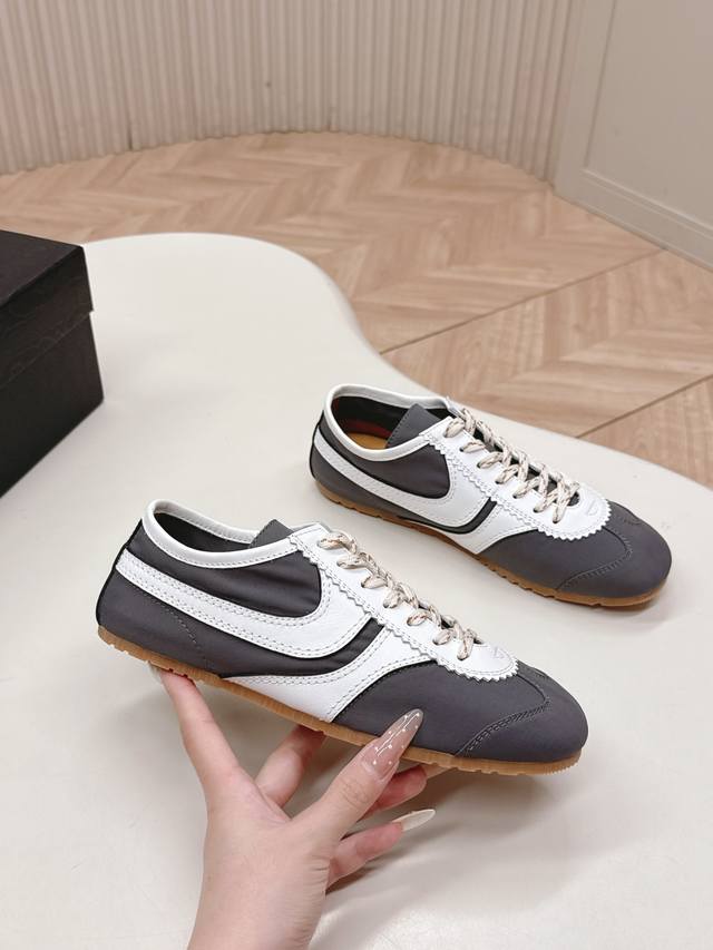 出 情侣款 Dries Van Noten 25Fw秋冬新款阿甘鞋 德训运动鞋 高级煅面,皮面拼接打造,灵感来自复古,全新演绎经典,轻便、舒适、透气的四季必备单品 无论是搭配牛仔裤还是裙子,风格切换毫 无压力材质让脚感更柔软,适合长时间穿着,即便是逛街也不会觉得累。这个细节真是打动了我! 材质:高丝光绸缎 牛皮 大底:橡胶大底 Size:女35-40,男39-45