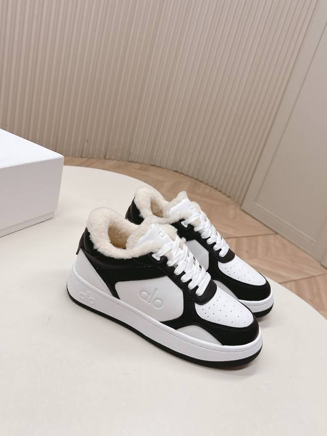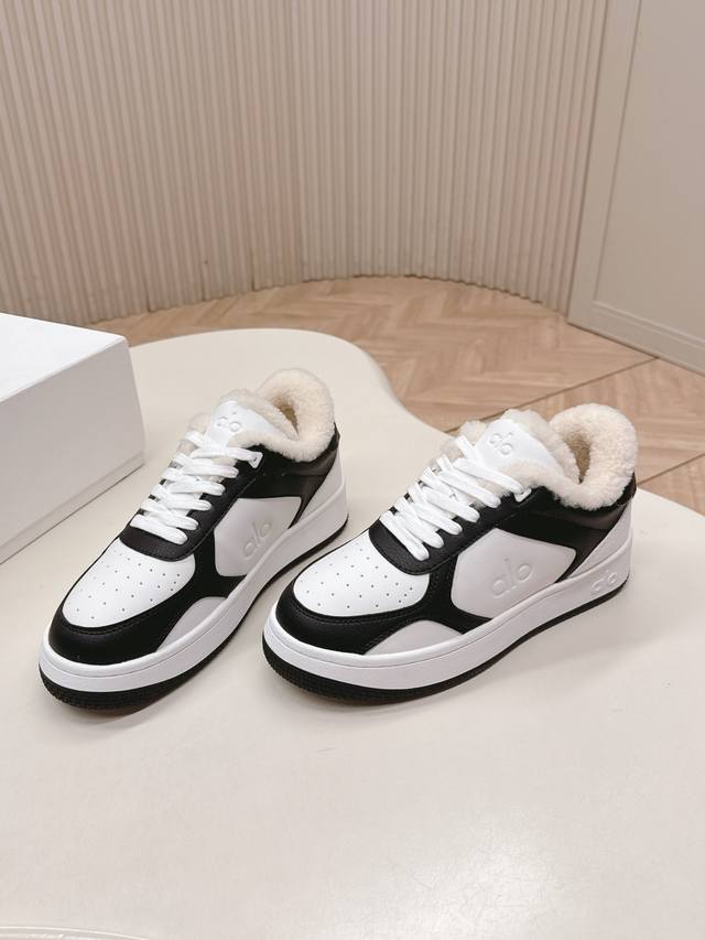 / 出 羊毛款 Alo小众潮牌 拼色小白鞋厚底舒适休闲鞋 上脚超级百搭!而且超级舒适!是厚底款但是上脚一点都不沉重!非常轻便!套上袜套搭配更好看!而且还是明星同款推