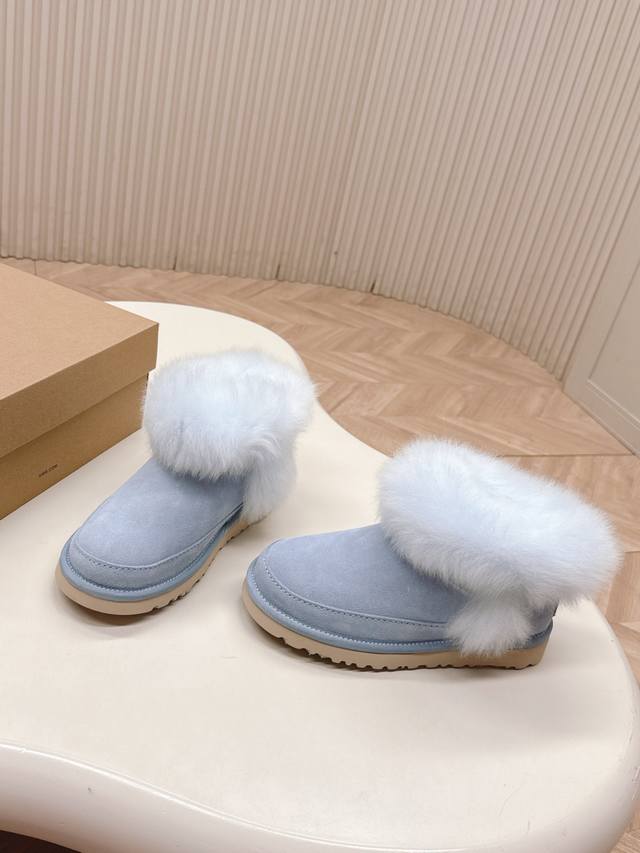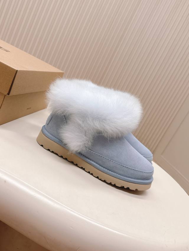 出 Ugg新款雪地靴 长毛款 今年的Ugg也太会拿捏少女心了吧 谁能拒绝这抹温柔到骨子里的Baby Blue 啊 很懂秋冬氛围感的毛茸茸的羊毛卷边直接戳中我的少女心,浅蓝色的麂皮和奶白厚底搭配,甜酷甜酷的,既保暖又显腿长~ DDD 居家穿软乎乎的像踩在云朵上,出p门搭个卫衣牛仔裤,松弛感拉满还特别吸睛35-41 DDD