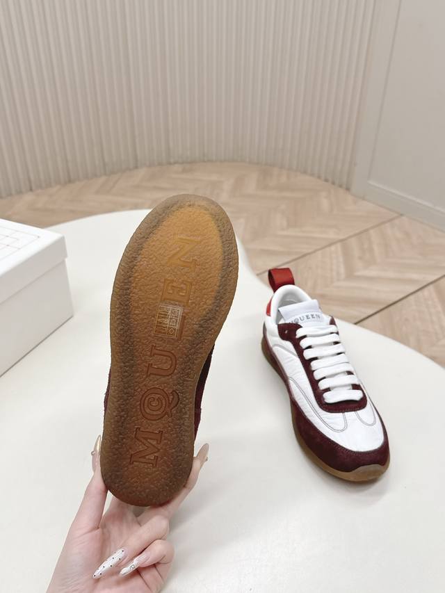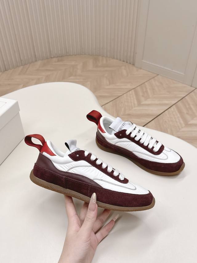 加新色!出 Mcqueen 麦昆 Ec1 26Ss新款 小白鞋 德训运动鞋 Ddd 当下最火爆的一款的德训鞋 灵感来自经典复古学院风,全新演绎经典,轻便、舒适、透气的四季必备单品 Ddd 无论是搭配牛仔裤还是裙子,风格切换毫 Ddd 无压力麂皮材质让脚感更柔软,适合长时间穿着,即便是逛街也不会觉得累。这个细节真是打动了我! Ddd 材质:高丝光牛反绒拼布 Ddd 内里:羊皮 Ddd 大底:原版生胶大底 Ddd Size:#女35-40 40订做不退换 DDD