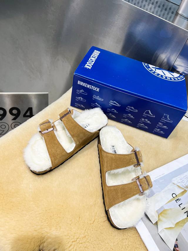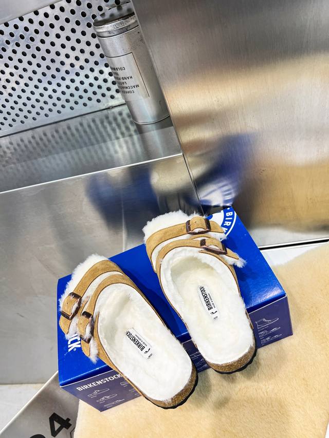 勃肯 22秋冬 最新 羊毛皮带拖 面料:进口丝光牛皮反绒 内里:澳洲羊毛 垫脚:增高澳洲羊毛 大底:超轻EVA发泡大底环保可循环木屑水台 码数:35~40#