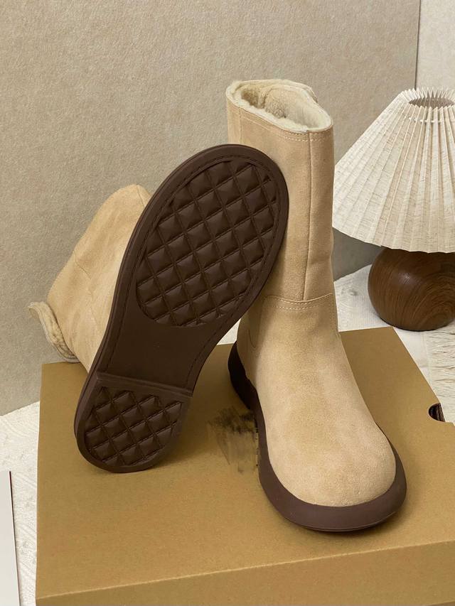 匠心细节: 高筒靴型搭配立体拼接鞋面 后跟精致金属扣点缀时尚基因 牛皮鞋面邂逅羊皮毛一体内里 1.5Cm黄金厚度羊毛锁温系统 轻量化防滑大底打造零负重体验 一鞋