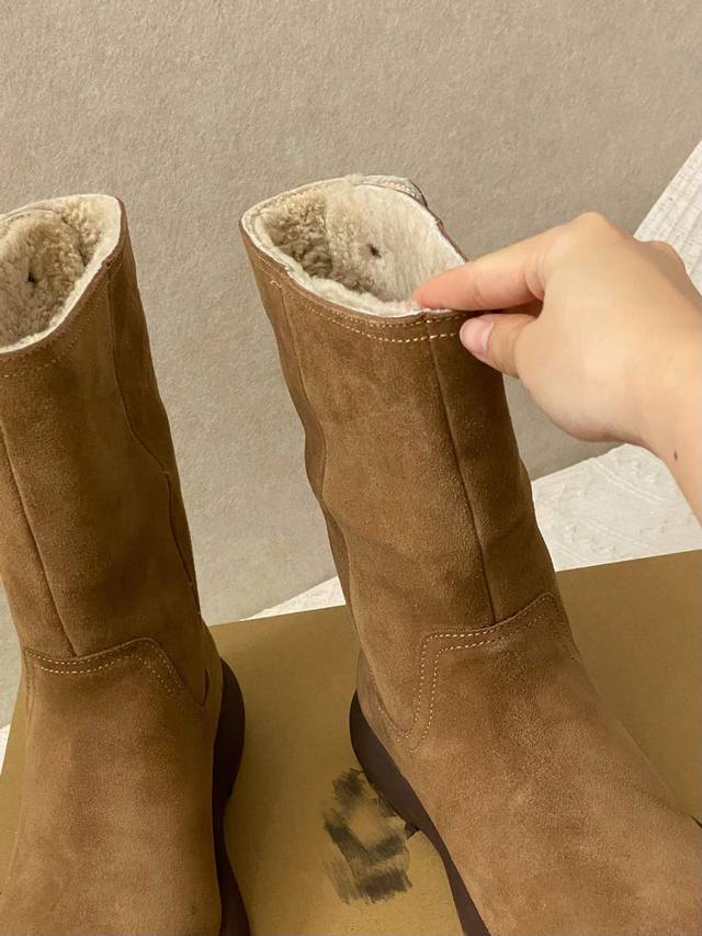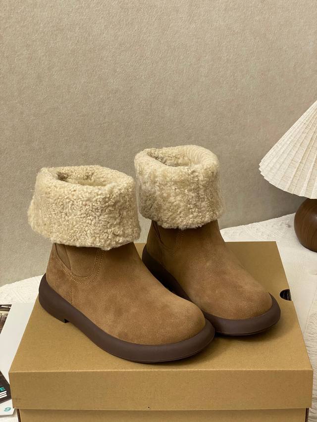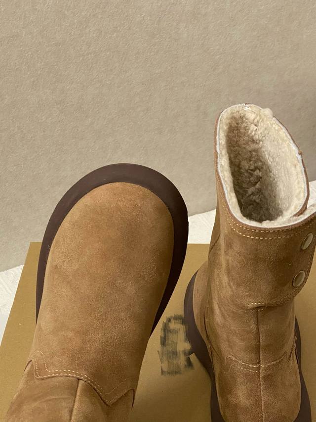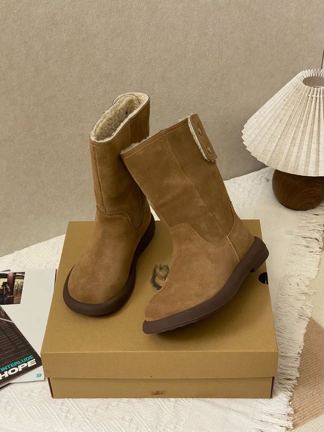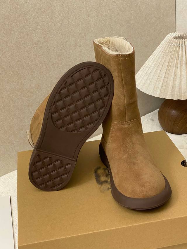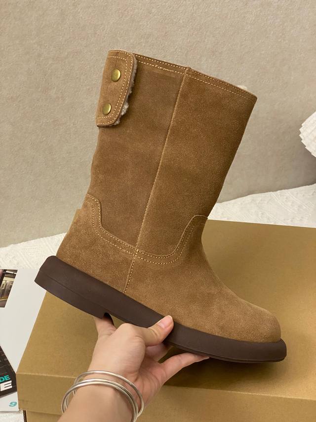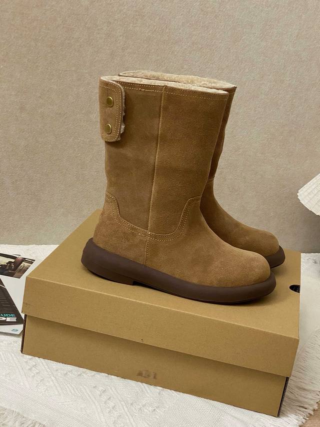 / 匠心细节: 高筒靴型搭配立体拼接鞋面 后跟精致金属扣点缀时尚基因 牛皮鞋面邂逅羊皮毛一体内里 1.5Cm黄金厚度羊毛锁温系统 轻量化防滑大底打造零负重体验 一鞋