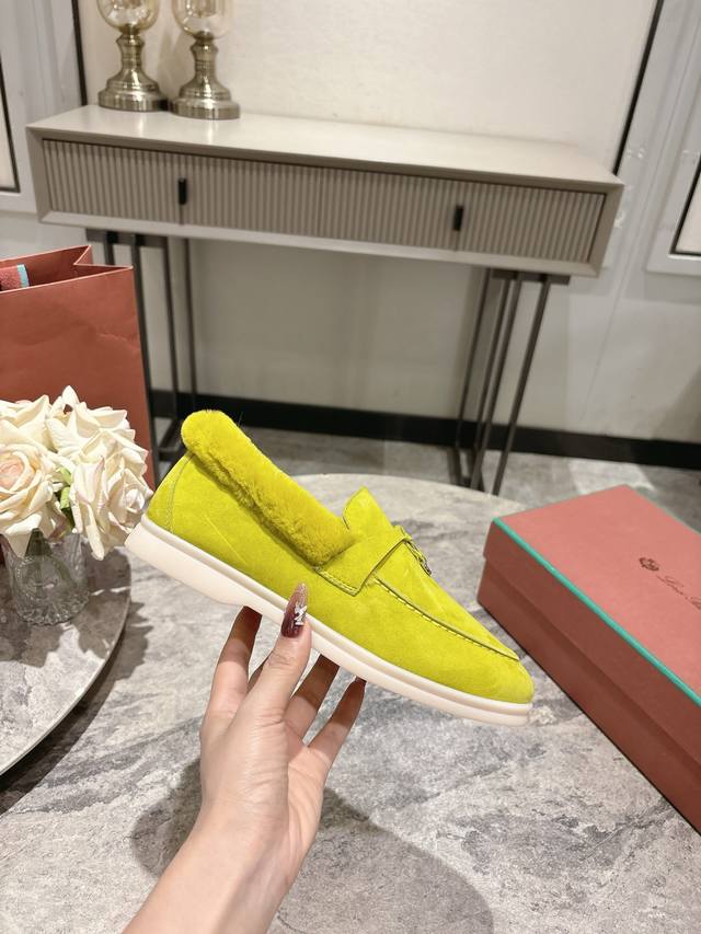 FFF 半拖 , DDD 单鞋 , DDD Loro Pian*经典爆款Lp顶级版本 英伦流苏平底毛毛乐福鞋 兔毛升级版 DDD 原来这就是传说走两万步都不会累脚的乐福鞋这双乐福鞋把颜值和脚感都拿捏住了,上脚一走就会被彻底沦陷~极简的设计吸睛耐看,穿搭加分项呀 软乎乎的脚感质感出众,不会磨脚就很Nice搭配软软糯糯的鞋底,日常通行久穿不累哦 谁能拒绝得了一双百搭又好看的乐福鞋呢?简直不要太气质,脚感和质感都拿捏,关键是显腿长不累脚,主打的就是一个刚刚好! DDD 材质:鹿皮 进口大密度兔毛 DDD 内里: