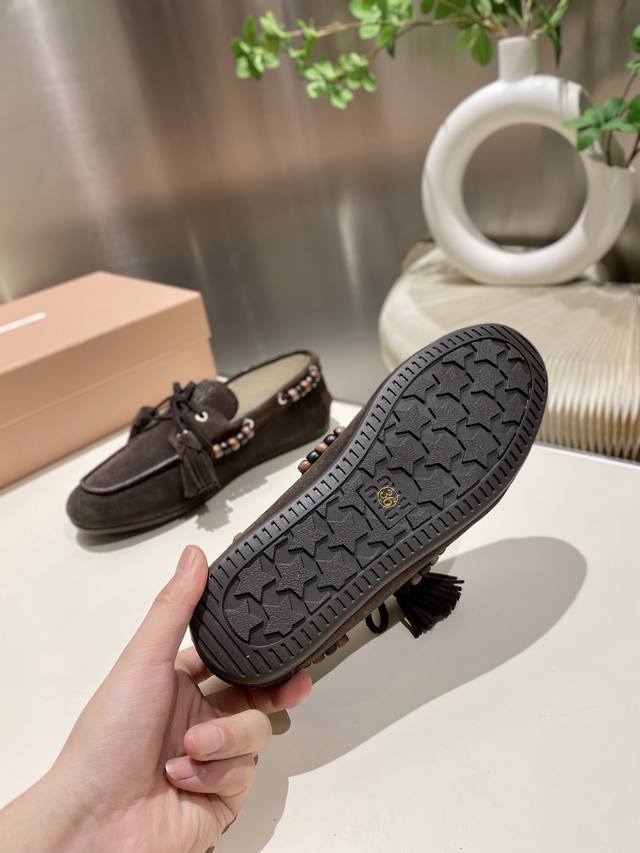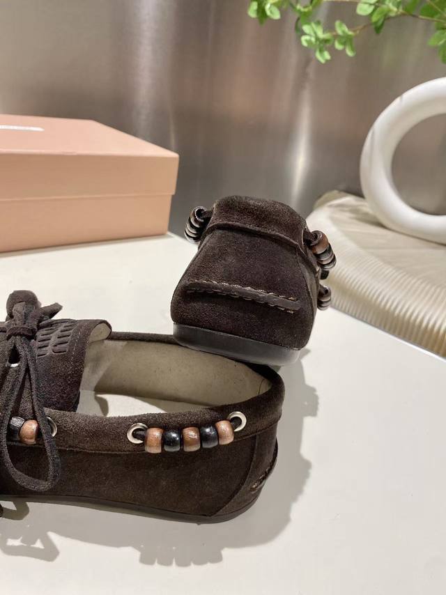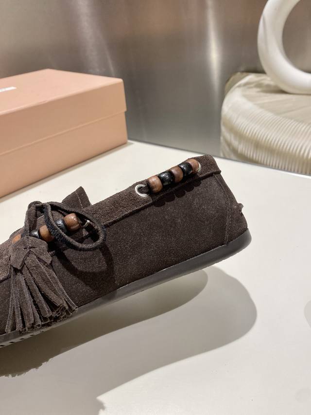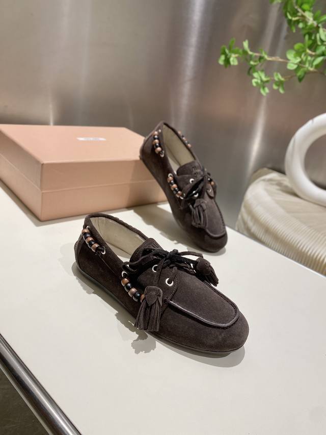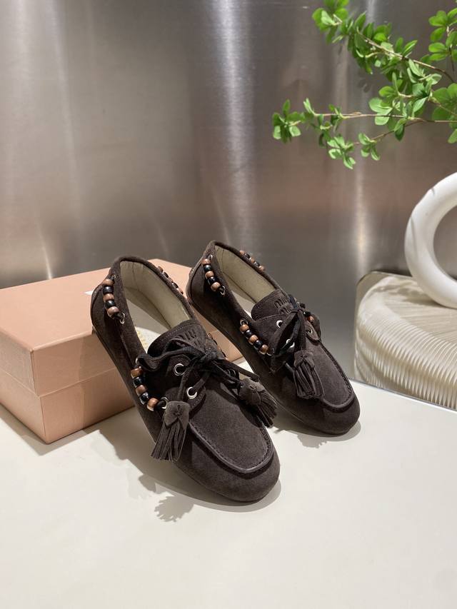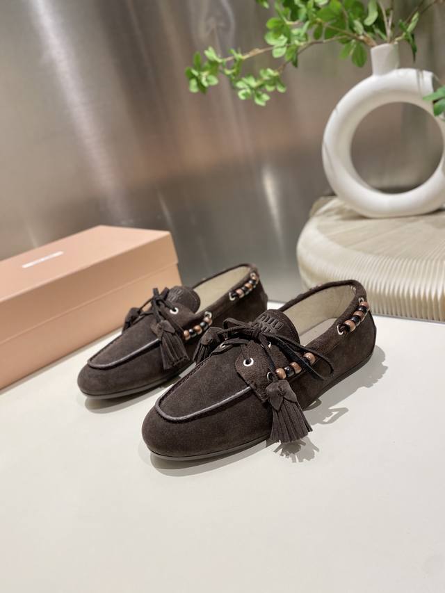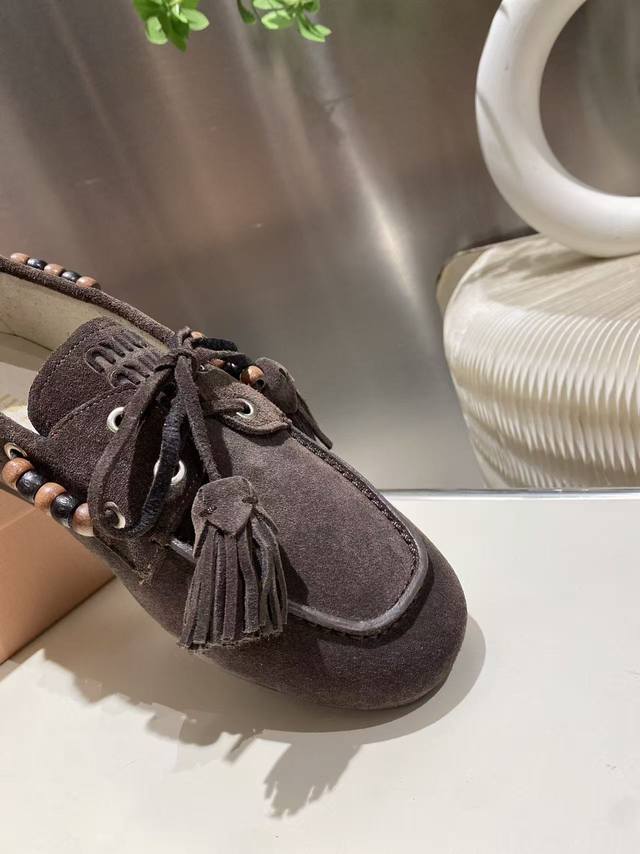 / 单鞋 !缪缪2025擦色系带鸡眼平底豆豆鞋 流苏走秀新款 .复古小皮鞋乐福鞋 豆豆鞋 复古时尚 简约高级 随意搭配 上脚非常舒适,年度必入款!超级重工 每一双都