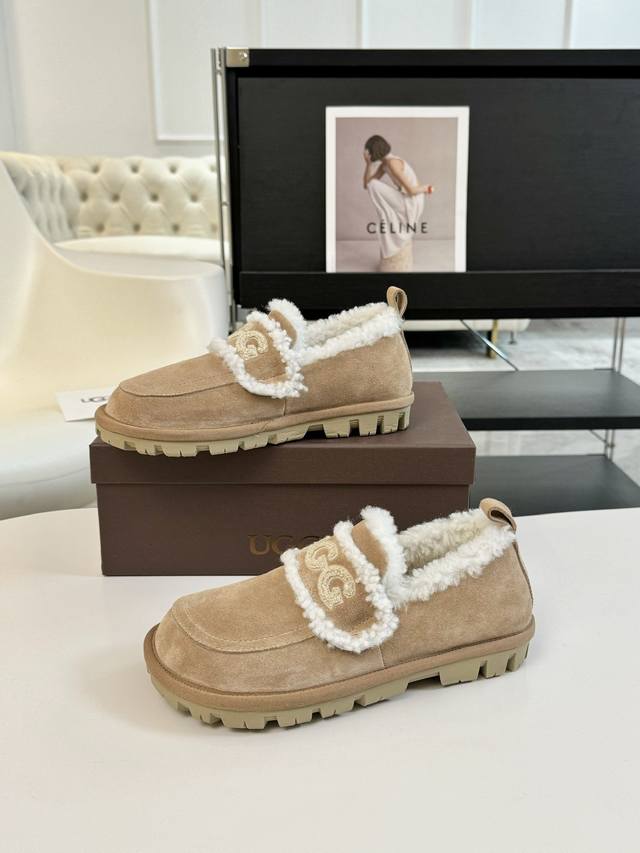 单鞋 Ugg~Vs秋冬爆款松糕厚底休闲毛鞋系列 松糕厚底毛鞋 一款不会撞衫的鞋子、简约的隔板设计上斑点的大底、鞋面真丝卷毛、秋冬季必备款、无论什么裤子裙子都能驾