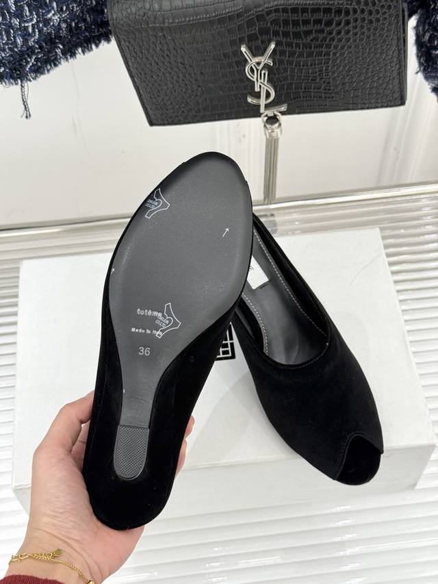 FFF 厂价 DDD Toteme26Wf新品坡跟鱼嘴拖鞋 DDD 将北欧极简的冷峻克制 DDD 揉入坡跟的慵懒松弛与鱼嘴的柔媚风情 DDD 以精准剪裁勾勒建筑感廓形 DDD 经典鱼嘴廓形经反复打磨 DDD 鞋头线条利落流畅 DDD 从视觉上自然延伸腿部线条 DDD 搭配坡跟的拔高效果 DDD 轻松穿出双腿修长笔直的既视感 DDD 小个子也能拥有挺拔气场。 DDD 鞋身摒弃所有冗余装饰 DDD 仅以流畅的一体化线条勾勒轮廓 DDD 将北欧极简的克制美学贯彻到底 DDD 鞋身至鞋跟的无缝车线工艺 DDD 既