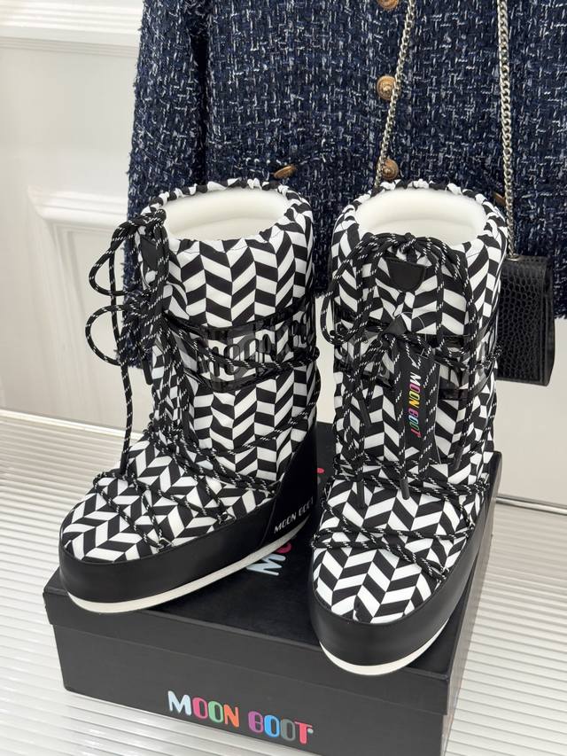 厂价 DDD Moon Boot经典爆款滑雪月亮靴 DDD 雪地靴系列 DDD 当凛冽寒风裹着碎雪漫过雪原 DDD 当滑雪道的弧线在纯白天地间延展 DDD 月亮靴携经典基因与硬核性能而来 DDD 既是征服冰雪的专业装备 DDD 亦是点亮冬日造型的潮流符号 DDD 延续品牌标志性廓形时尚设计 DDD 圆润的鞋身勾勒流畅线条 DDD 摒弃冗余装饰却自带吸睛气场 DDD 无论是利落纯色款的极简高级 DDD 还是撞色拼接款的鲜活吸睛 DDD 搭配滑雪服利落飒爽 DDD 适配冬日休闲装慵懒随性 DDD 哪怕是街头潮