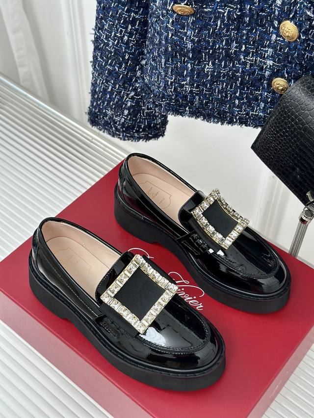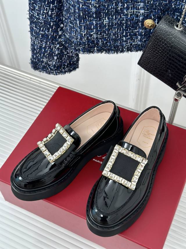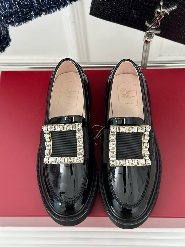 厂价 Roger Vivier|Rv经典秋冬水钻方扣厚底乐福鞋 无钻的低调耐看 带钻版真的是两个字!惊!艳!闪瞎我的眼~特别是穿衣偏爱简单款的妹子们,配一双闪闪