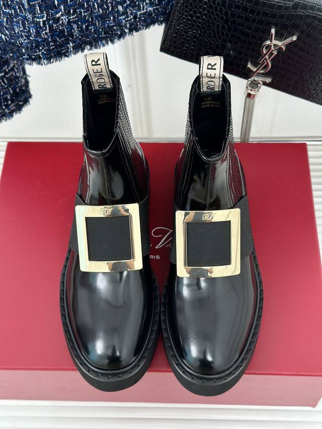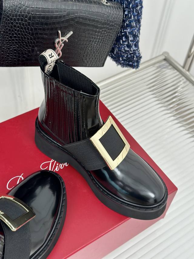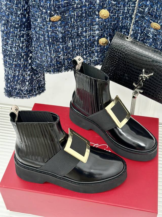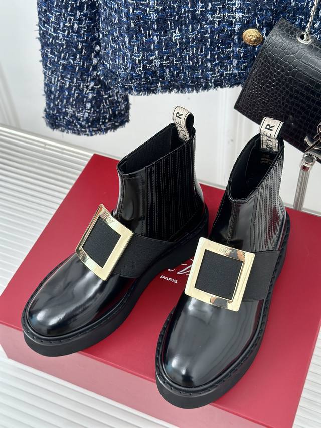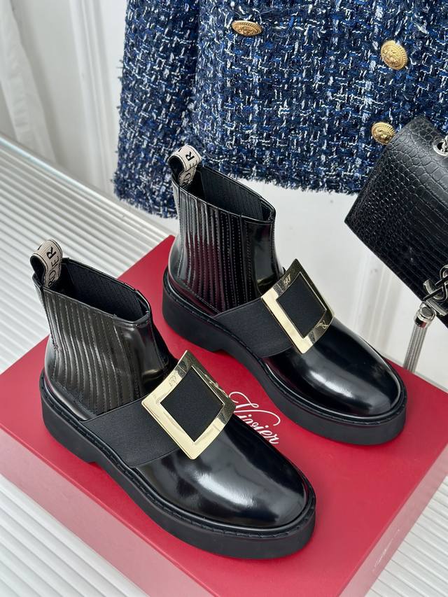 厂价 Roger Vivier|Rv经典秋冬水钻方扣厚底短靴 无钻的低调耐看 带钻版真的是两个字!惊!艳!闪瞎我的眼~特别是穿衣偏爱简单款的妹子们,配一双闪闪的