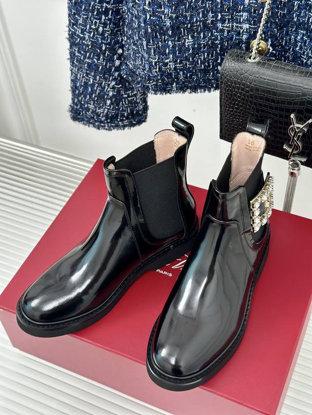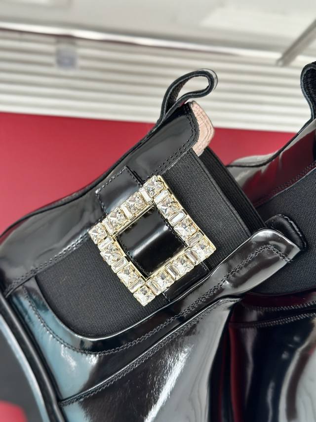 / 厂价 Roger Vivier|Rv经典秋冬 水钻方扣短靴 鞋面采用原版定制牛皮 内里垫脚混种羊皮 原版开模定制发泡大底 Size:35-39 40定制
