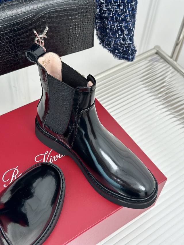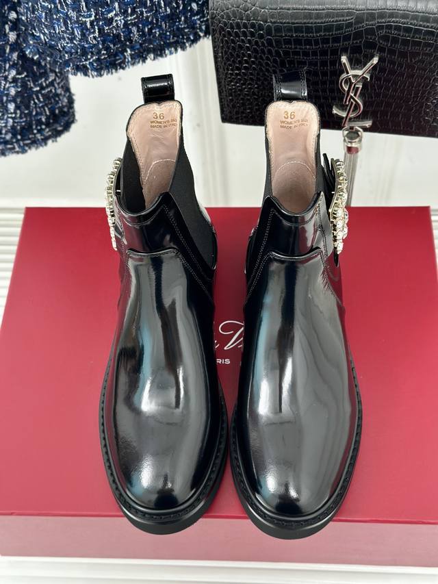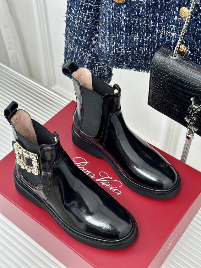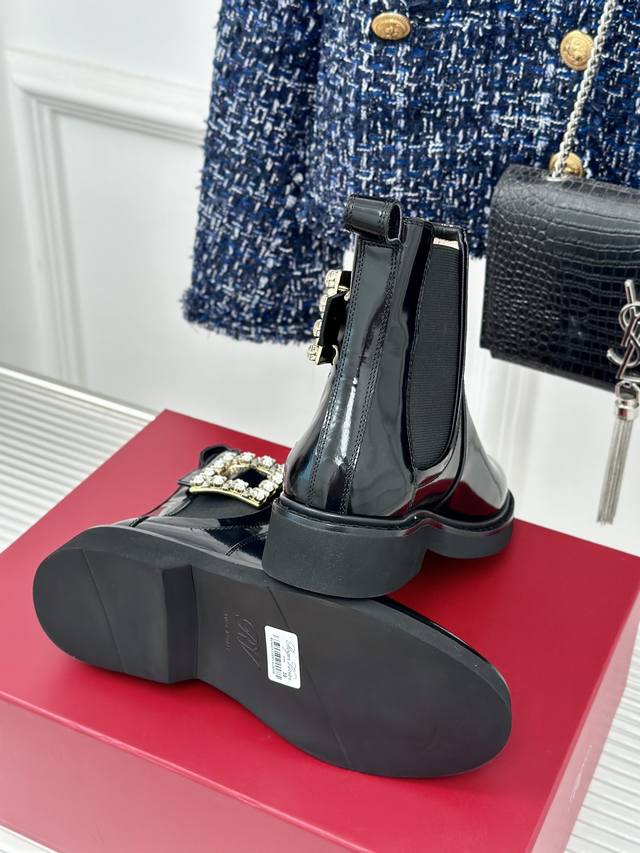 厂价 Roger Vivier|Rv经典秋冬 水钻方扣短靴 鞋面采用原版定制牛皮 内里垫脚混种羊皮 原版开模定制发泡大底 Size:35-39 40定制