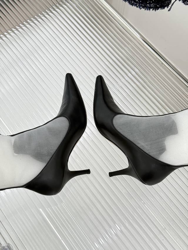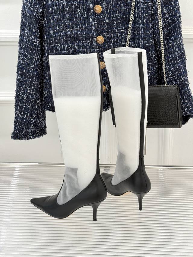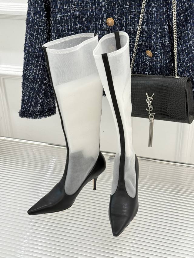 The Row25Wf新品网纱拼皮尖头高跟长靴